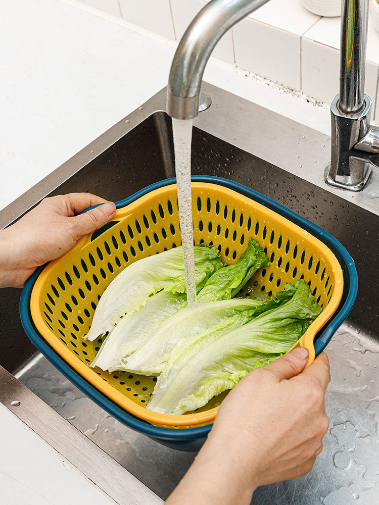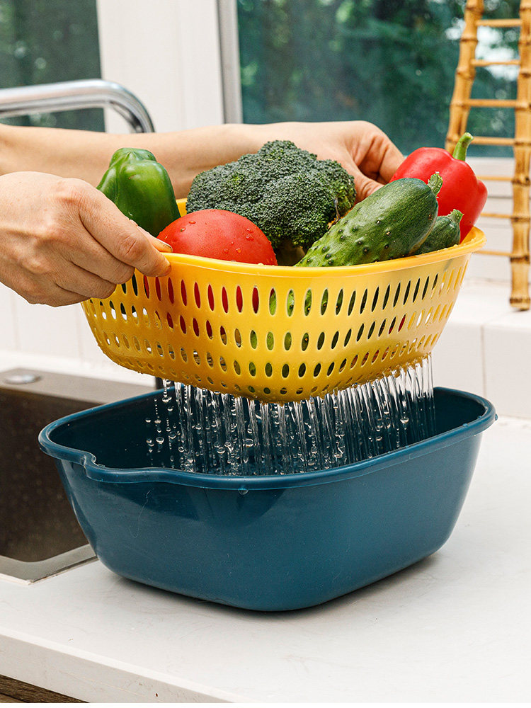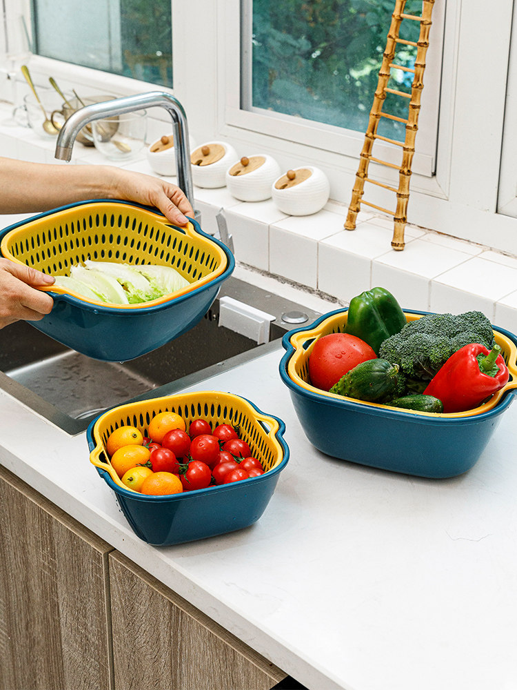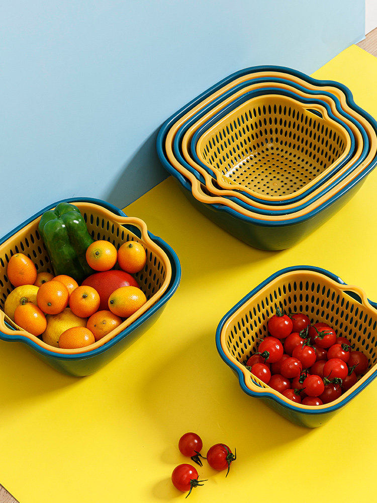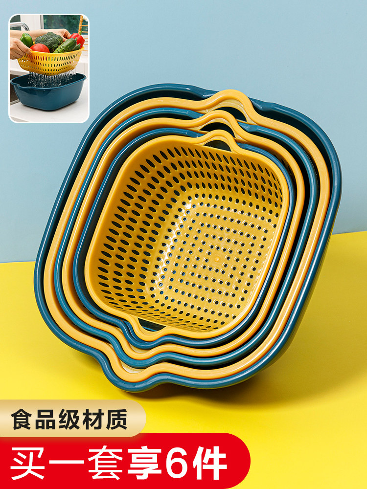 Сливная корзина, набор из шести предметов, двухслойная корзина для овощей из восьми предметов для мытья фруктов, бытовая тарелка для фруктов, кухонная раковина, пищевой сорт