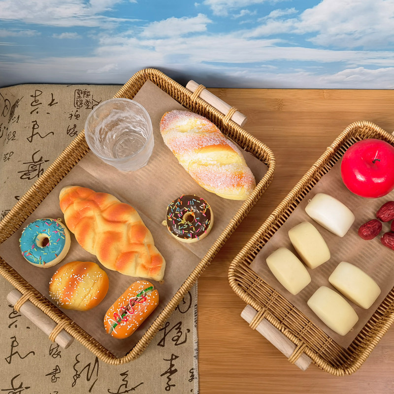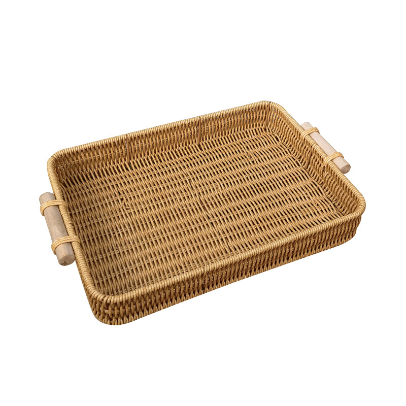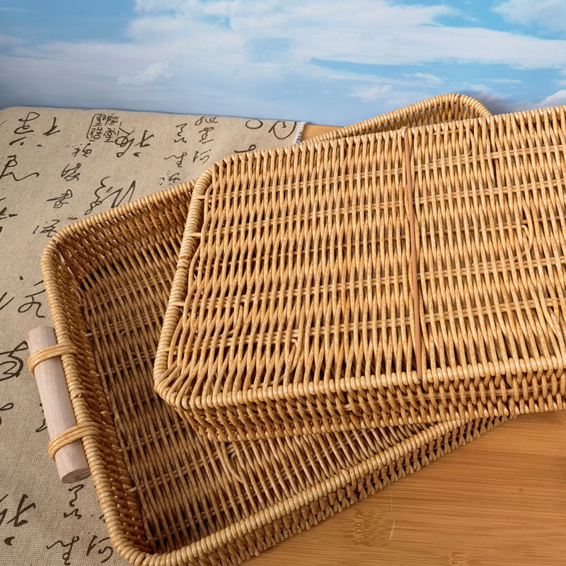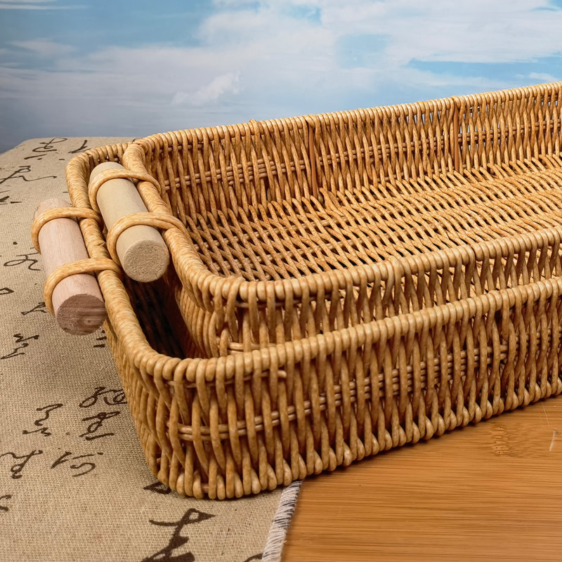 Деревянная ручка имитация ротантской пластиковой прямоугольный лоток ретро -хлебной пирог закуски ручной национальной ветры сплетен фруктов