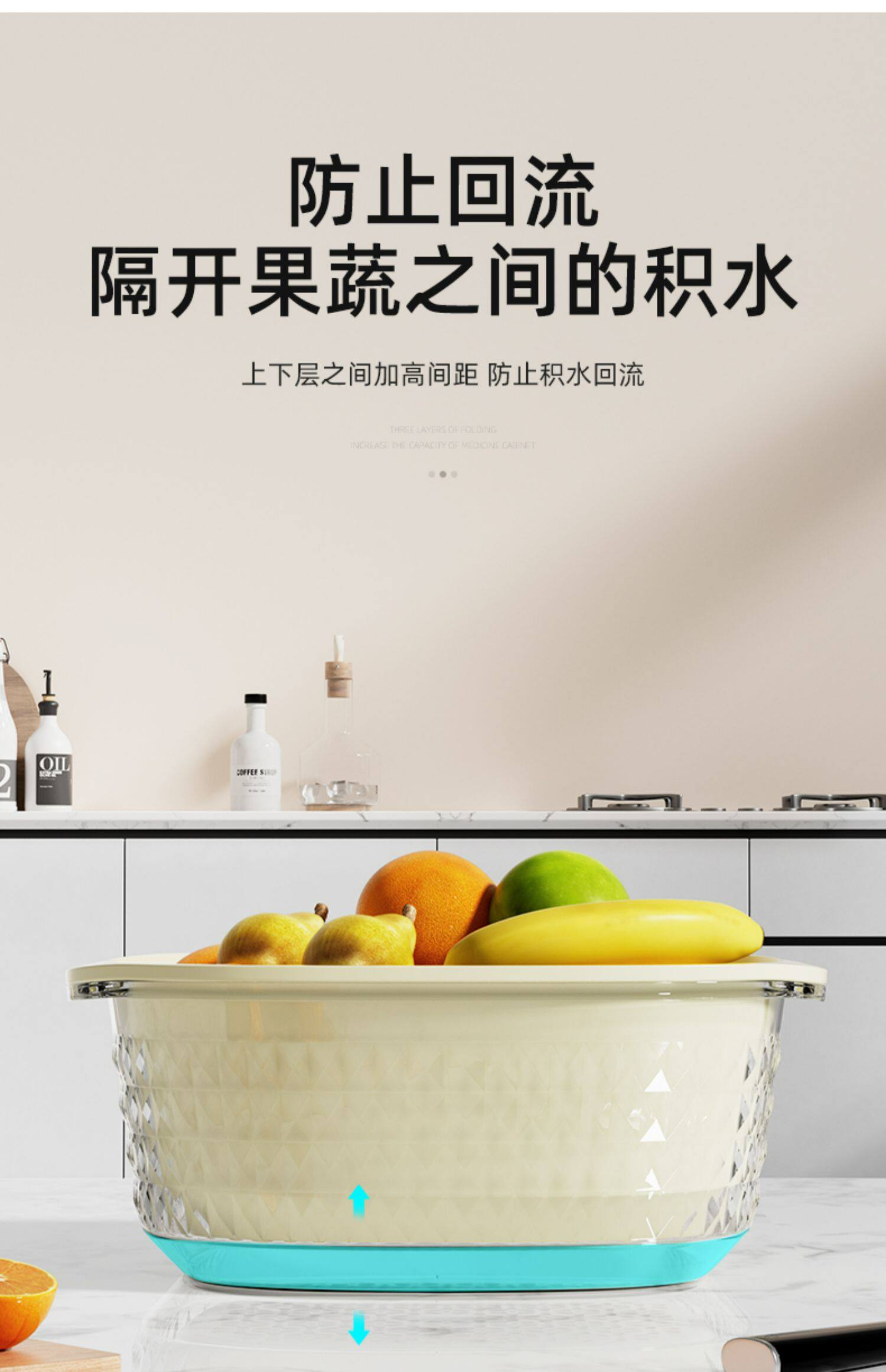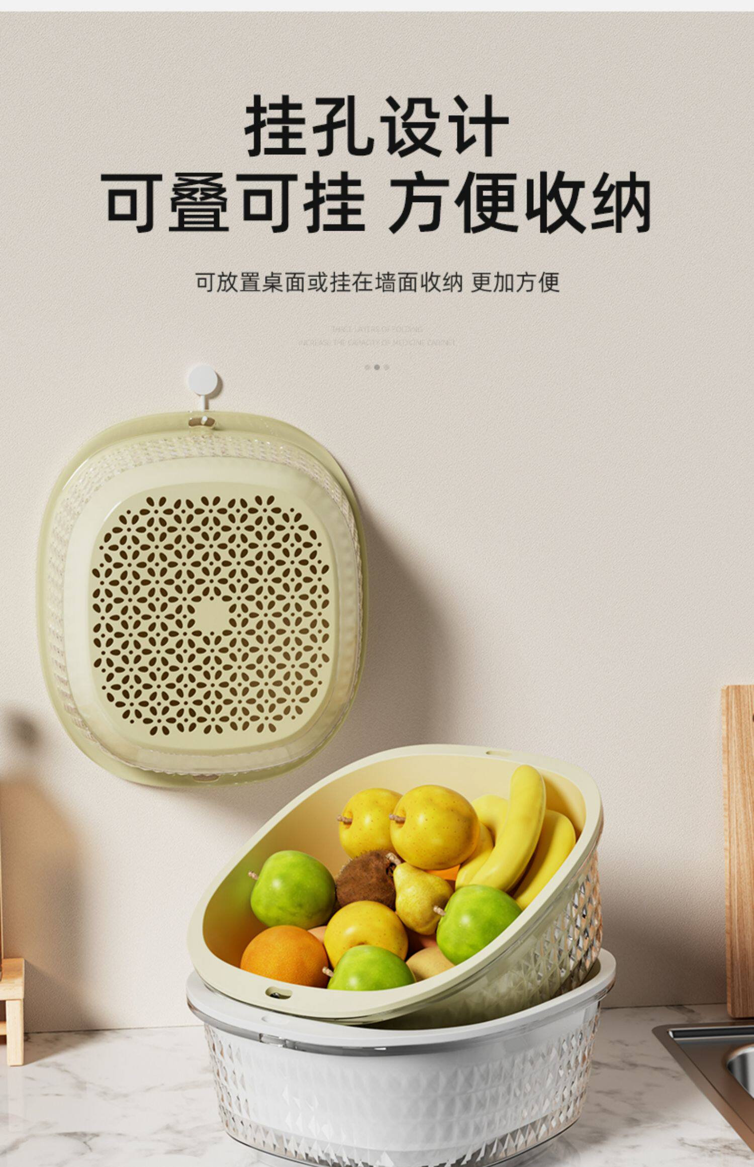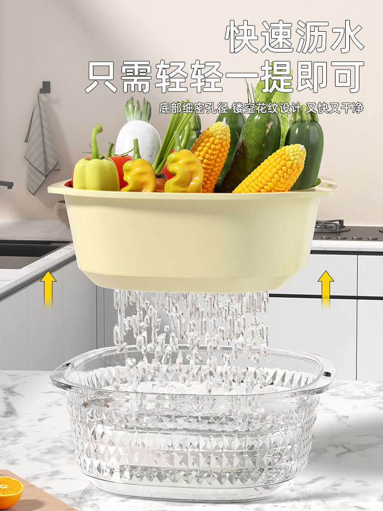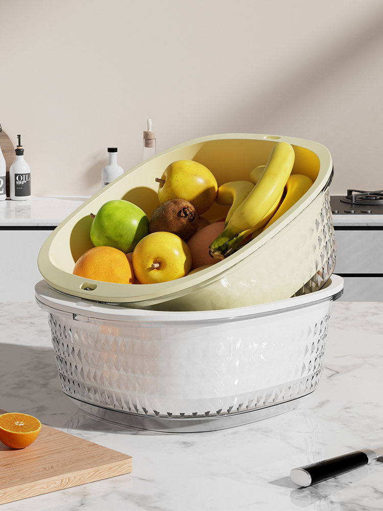 Мыть бассейн с двойным слоем слива корзины кухонные принадлежности для гостиной кофейник дома фрукты корзина корзина горшки с амут -корзиной