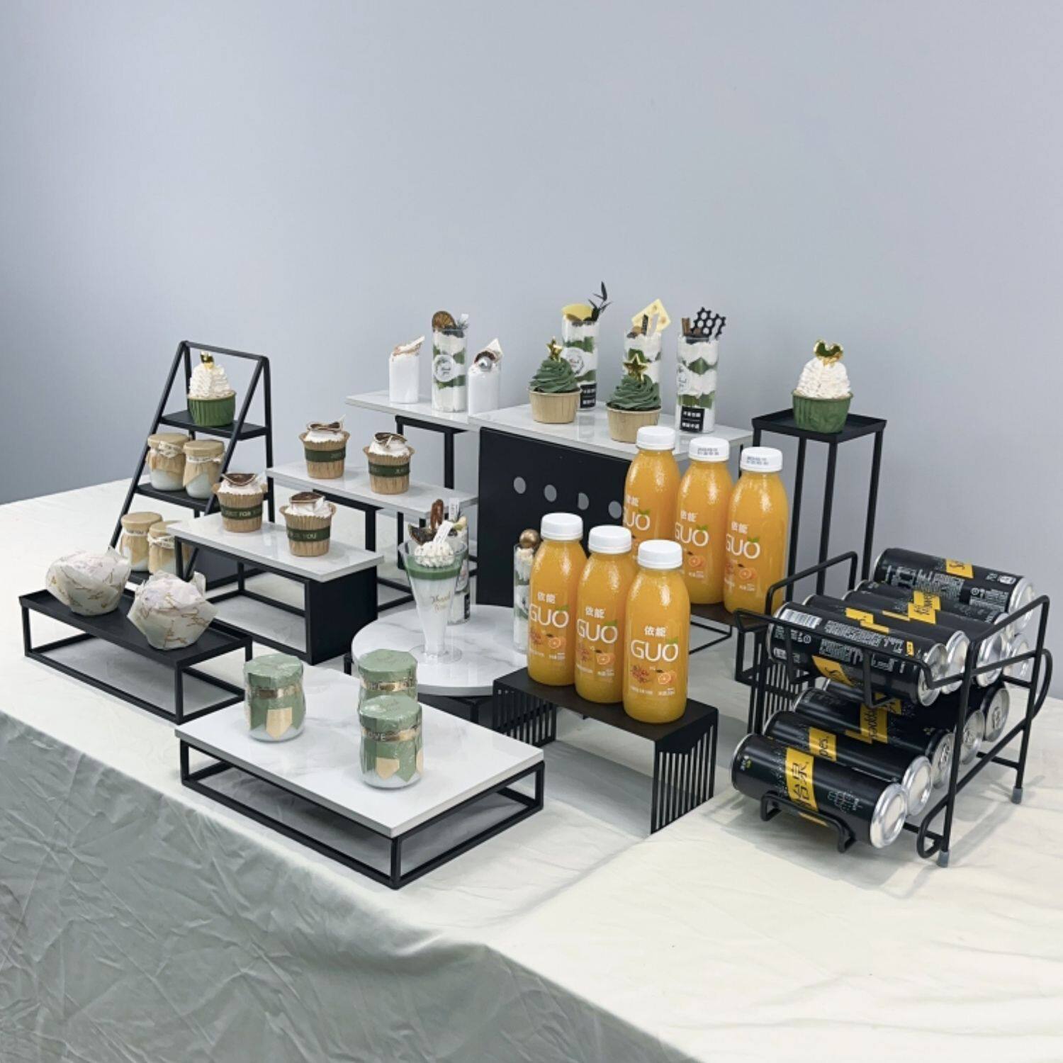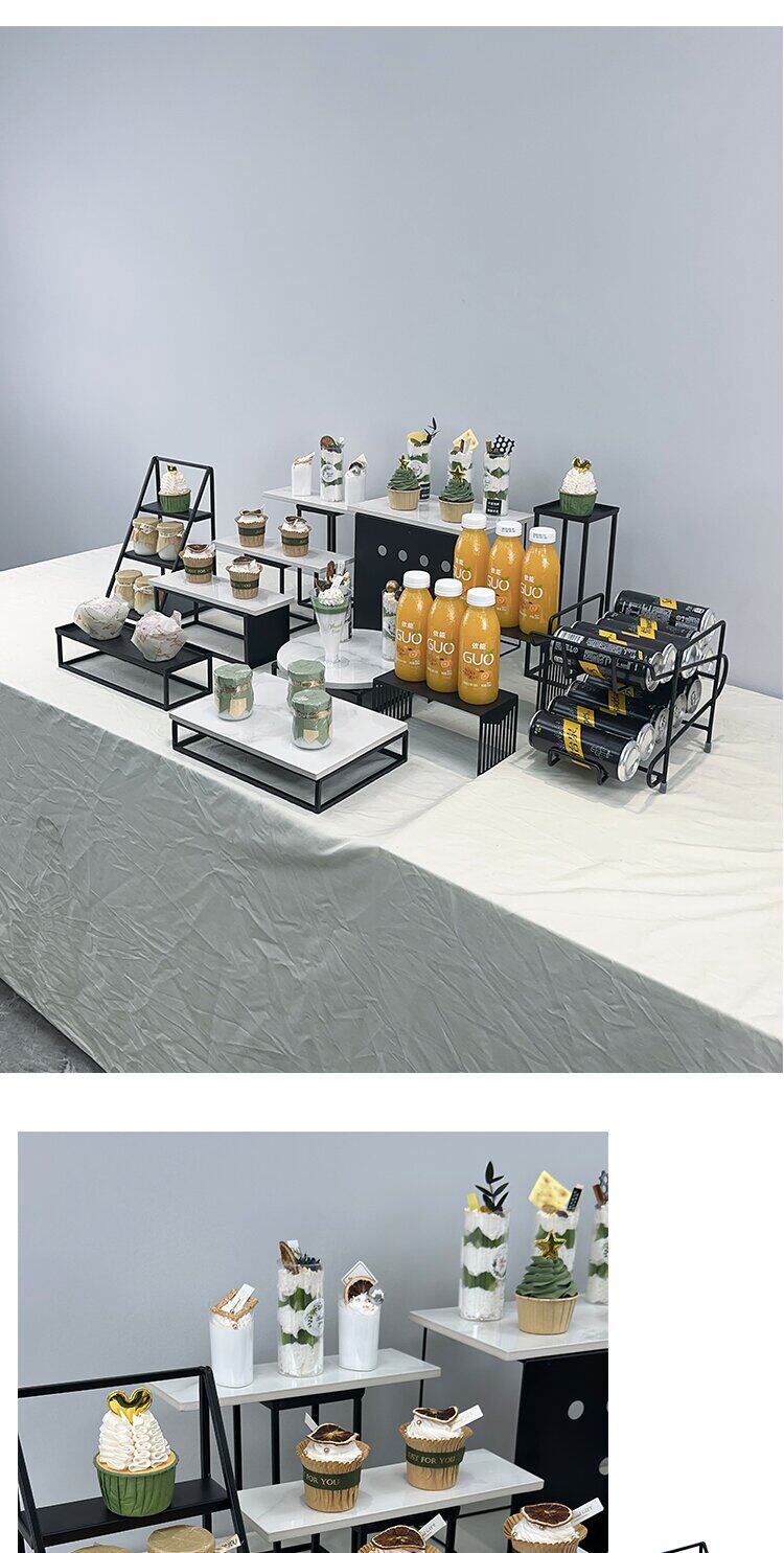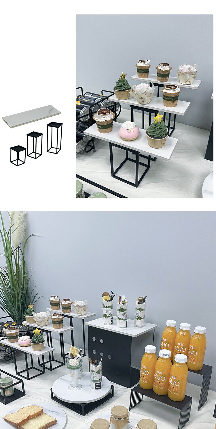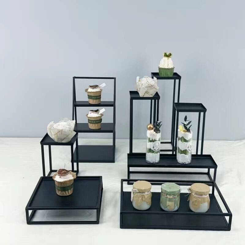 Европейский стиль чайный перерыв торт полки набор набора набора набора черного железа торт тарелка бизнес -дисплей Rock Board поднос