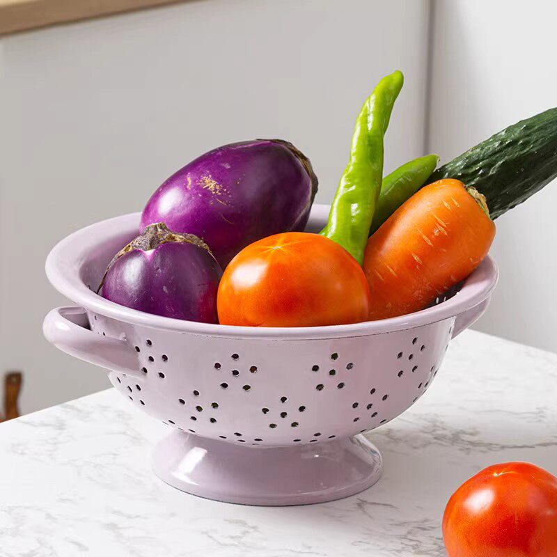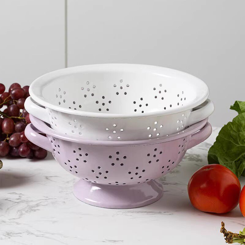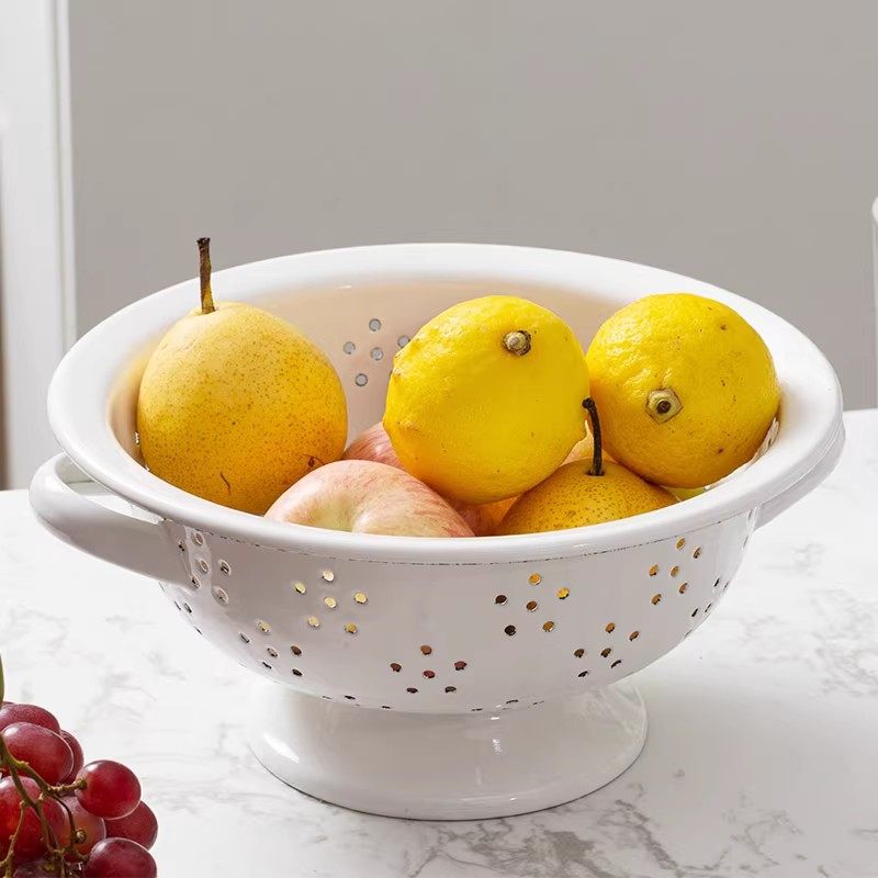 [Недостаток] Утолщенная эмалированная сливная корзина в стиле ретро, корзина для фруктов, сливная корзина для овощей, тарелка для фруктов, корзина для мытья овощей