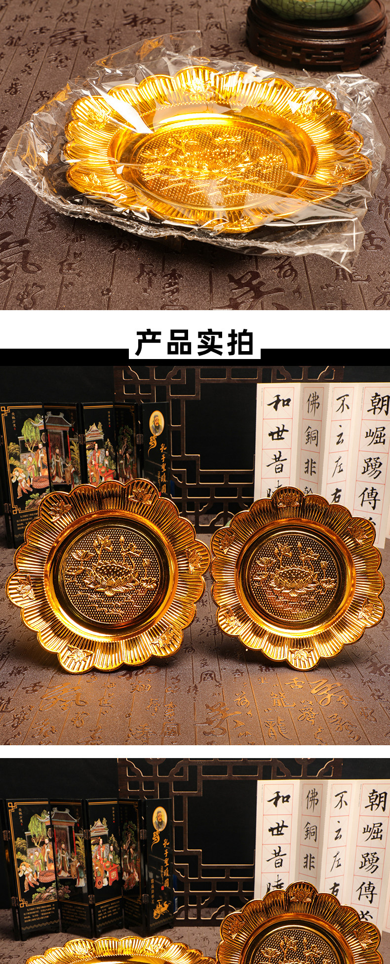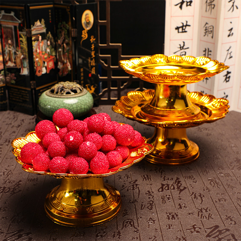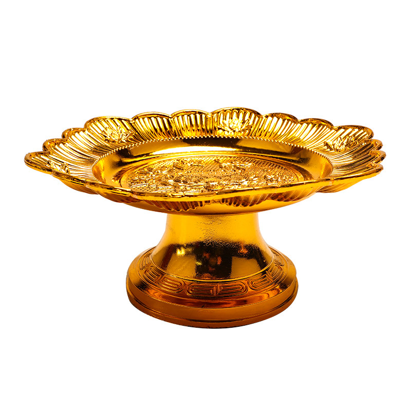 Ретро лотос, посвященный золотистому пластиковой пластинке с водяной фруктовой тарелкой Буддийская наследя