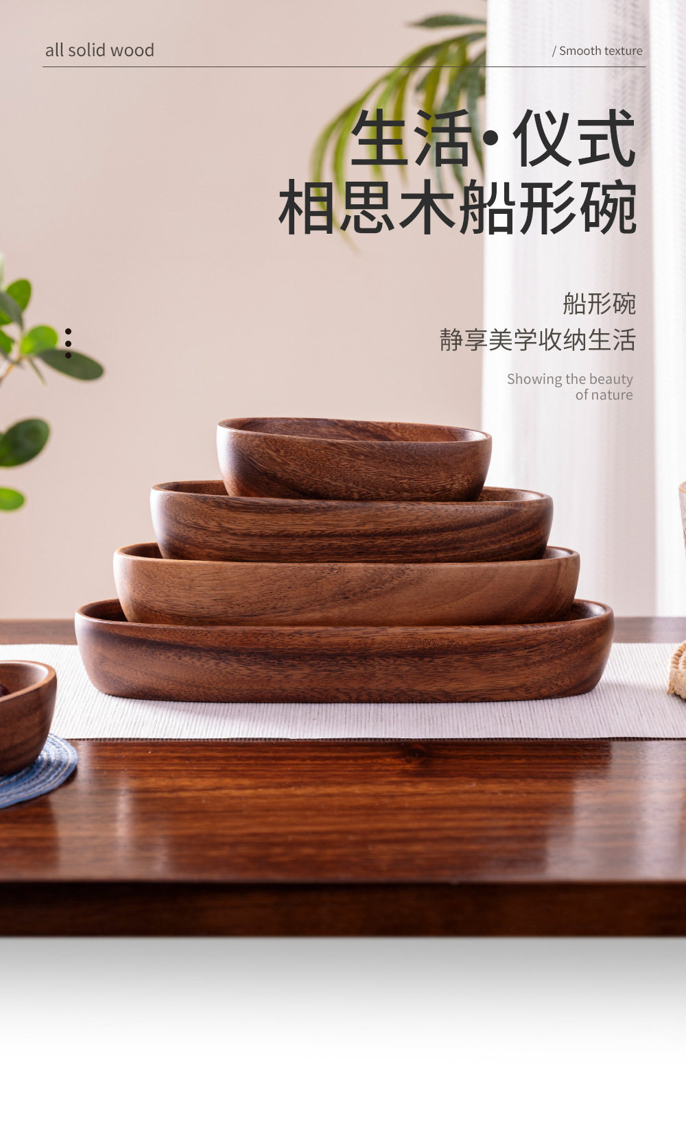 Лодочный ореховый лодка миска Qimchi деревянная чаша для таблицы творческий фруктовый десерт акация