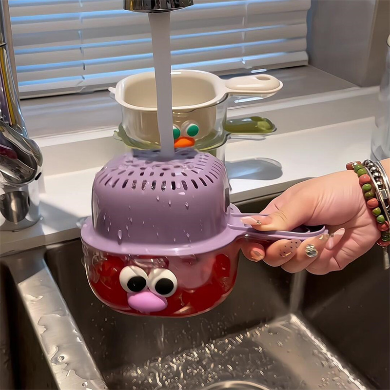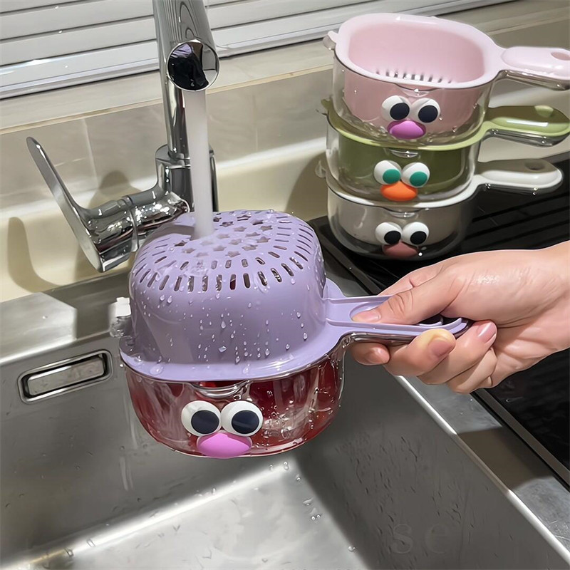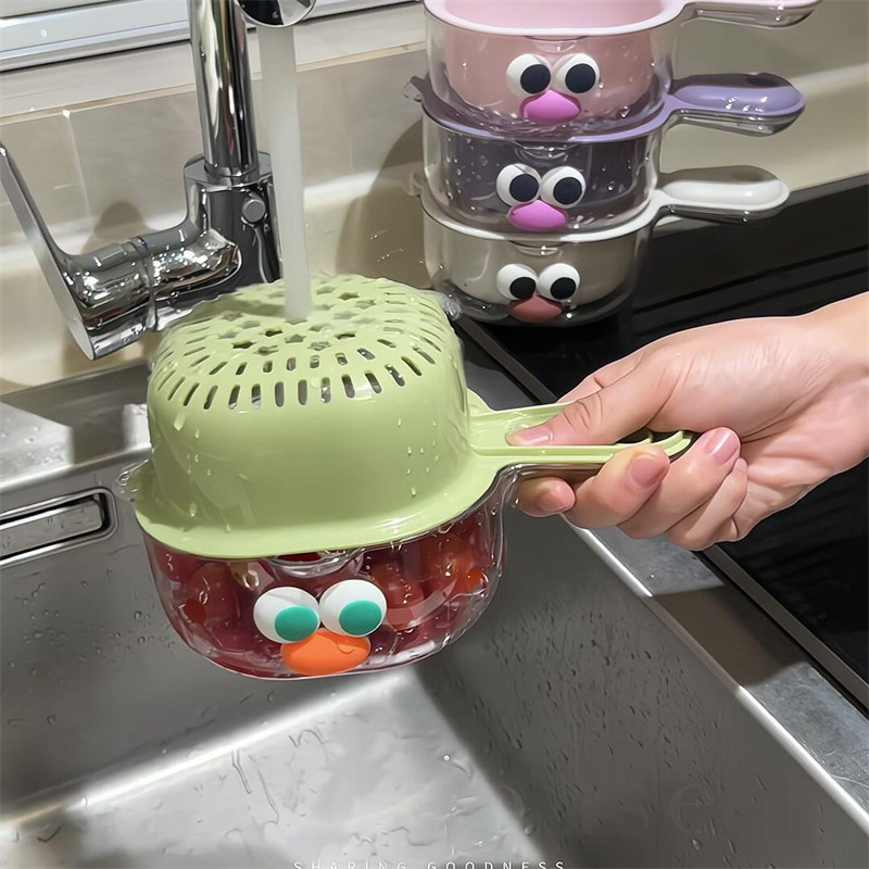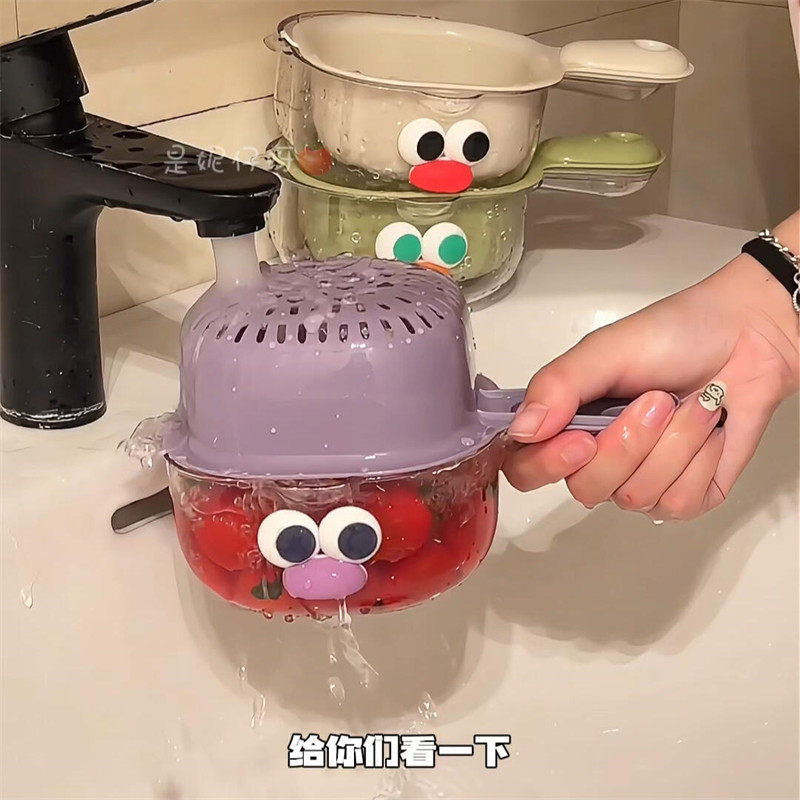 [Кухонные товары] милая сливная корзина для мытья фруктов с ручкой, фильтр для воды, двухслойная утолщенная корзина для мытья овощей 2-в-1, домашняя