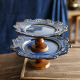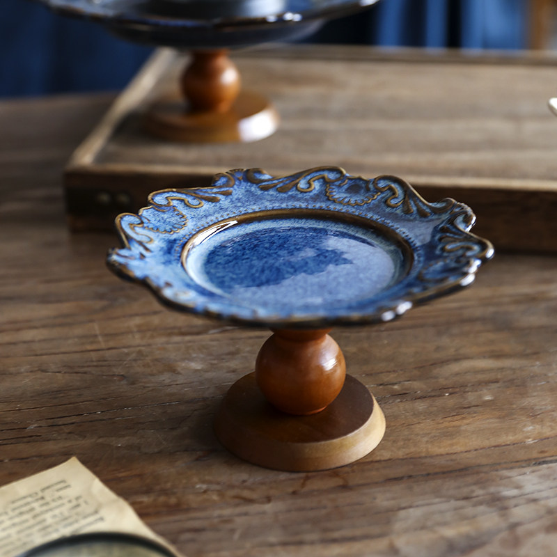 Поднос для французского торта, керамический поднос на высоких ножках, настольный поднос для чая, поднос для десерта послеобеденного чая, закрытый поднос для закусок с древними фруктами