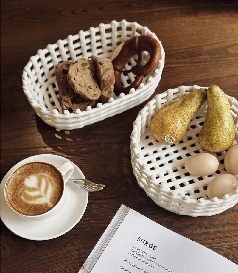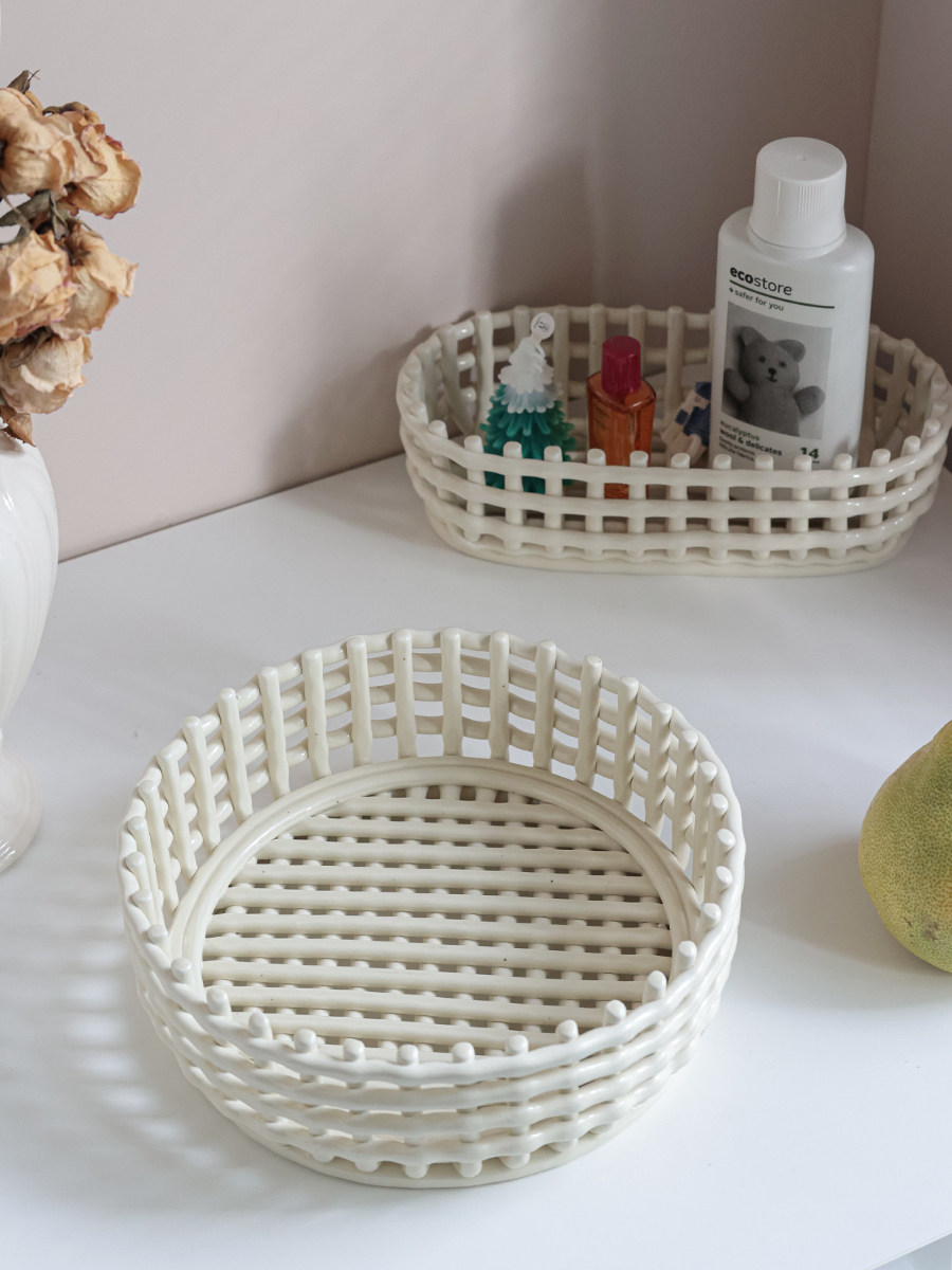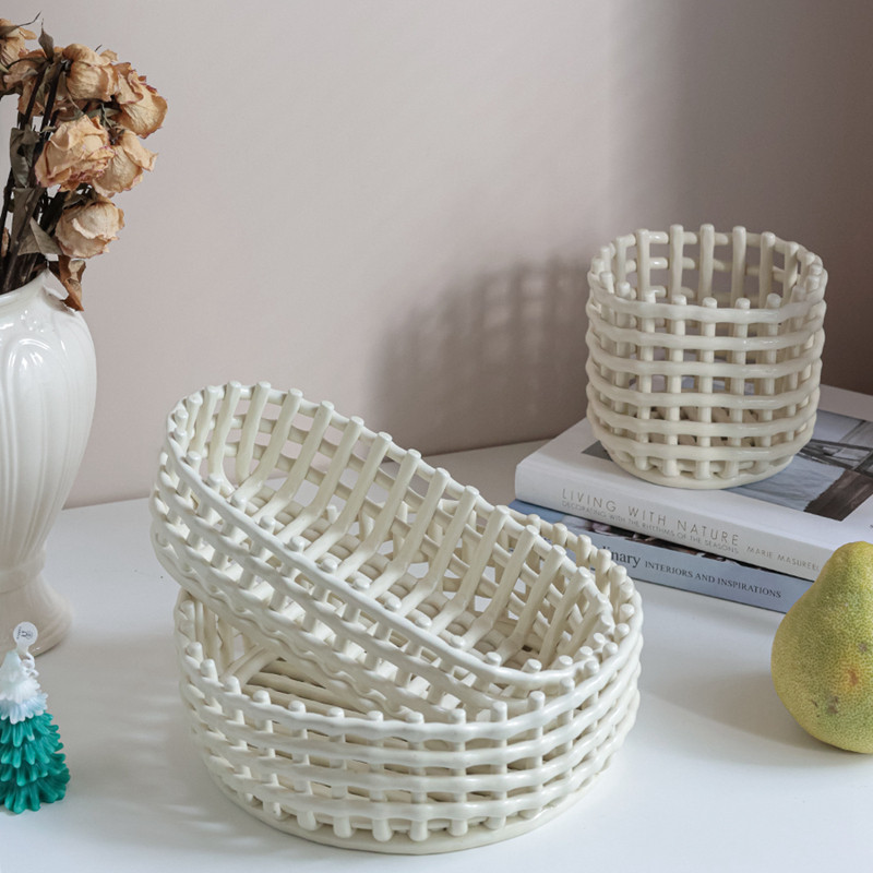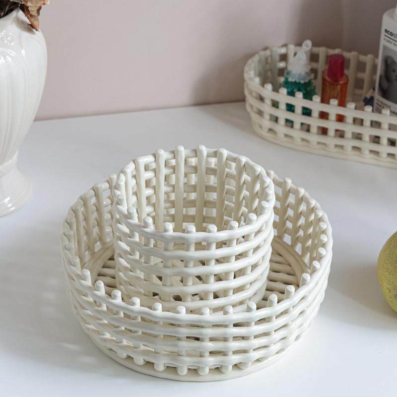 [Mengtian Liangpin] Экспортирует скандинавскую нишу ручной работы из керамической сетки, плетеную тарелку с фруктами, корзину с фруктами, сливную корзину для палочек для еды