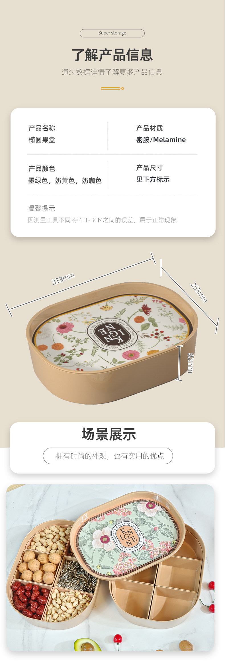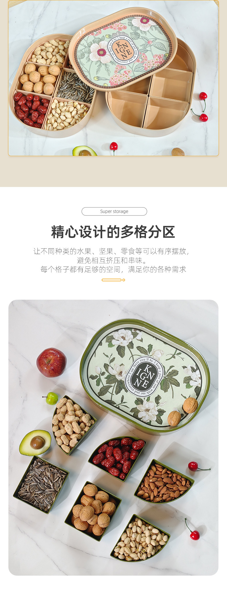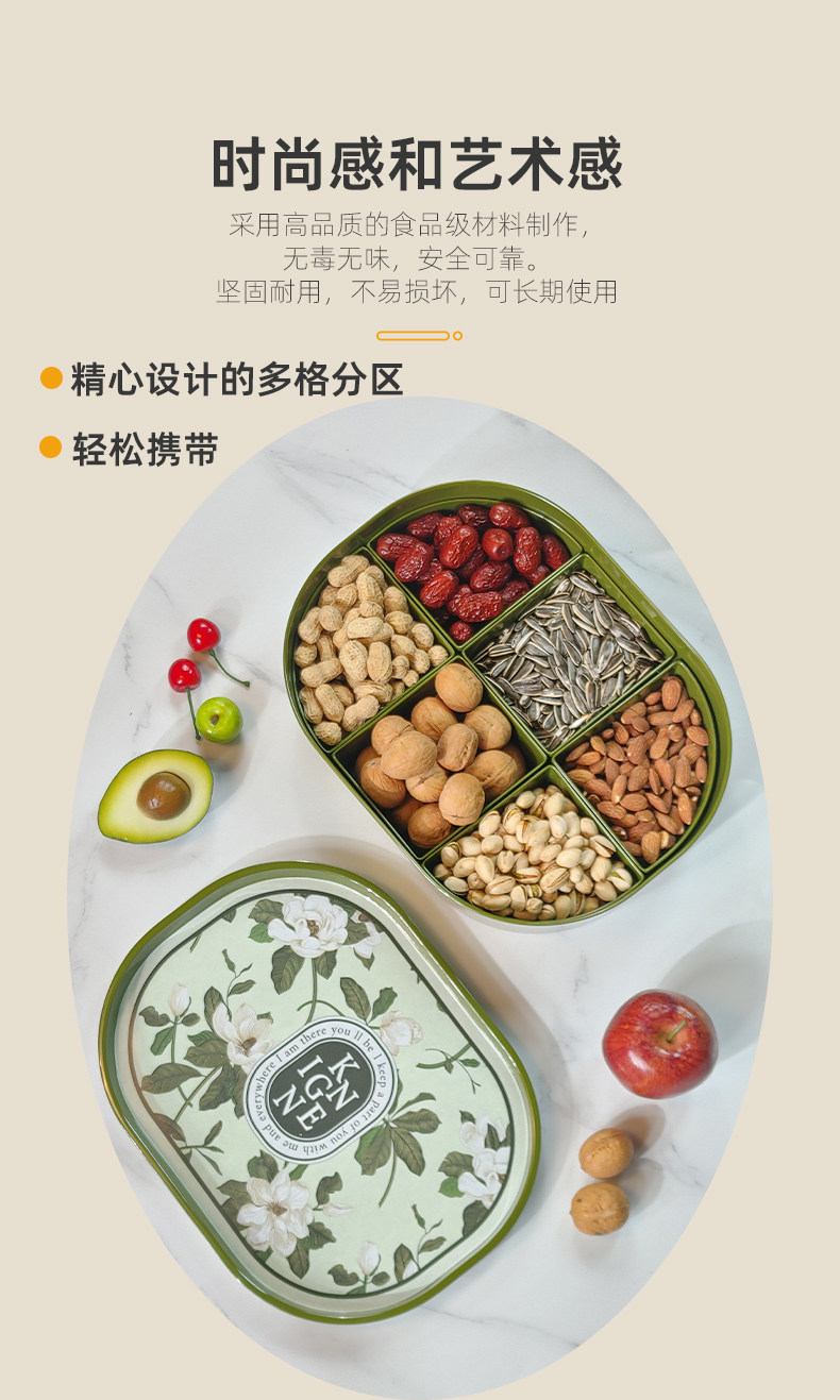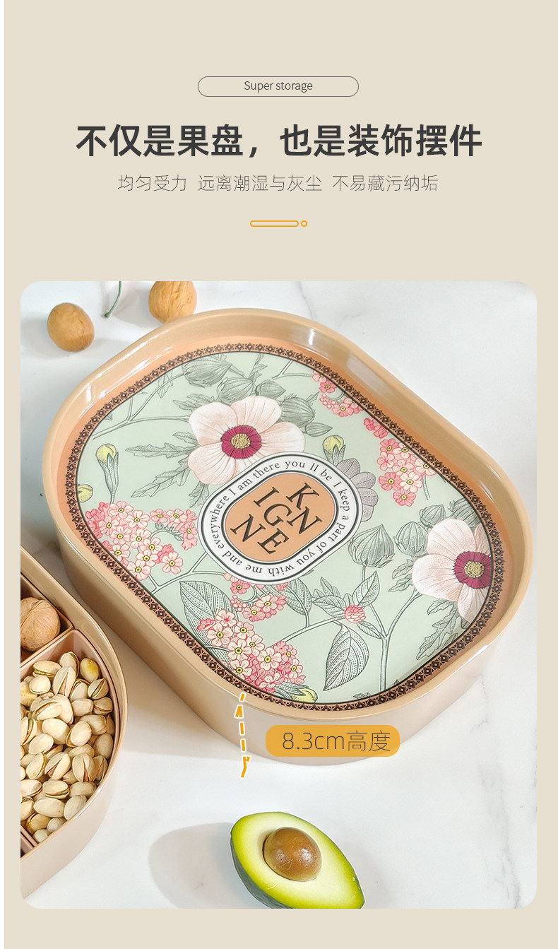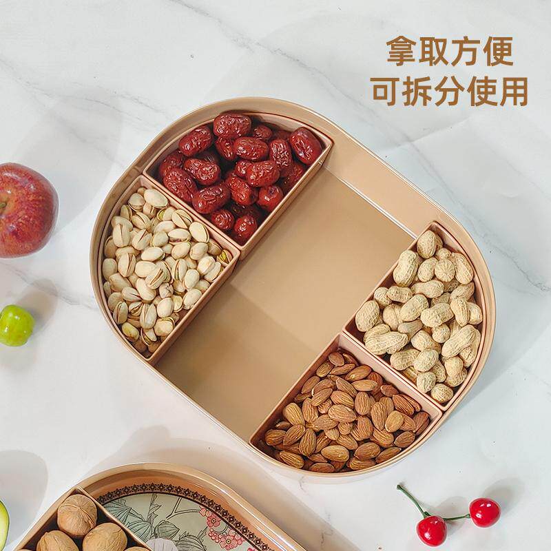Овальная меламиновая сушная фруктовая коробка с крышкой для весенней праздничной фруктовой коробки гостиная с отдельной ореховой тарелкой многофункциональная ящик для хранения