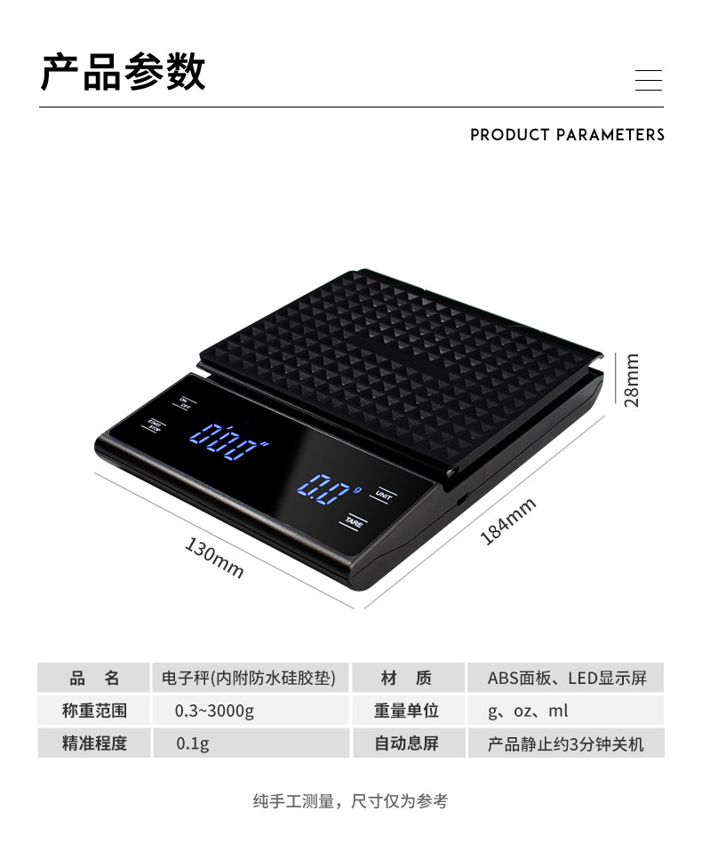 Кофейный электронный масштаб домохозяйства умная рука, толкающая кофе, размером 0,1 г итальянского шкала бара кухня