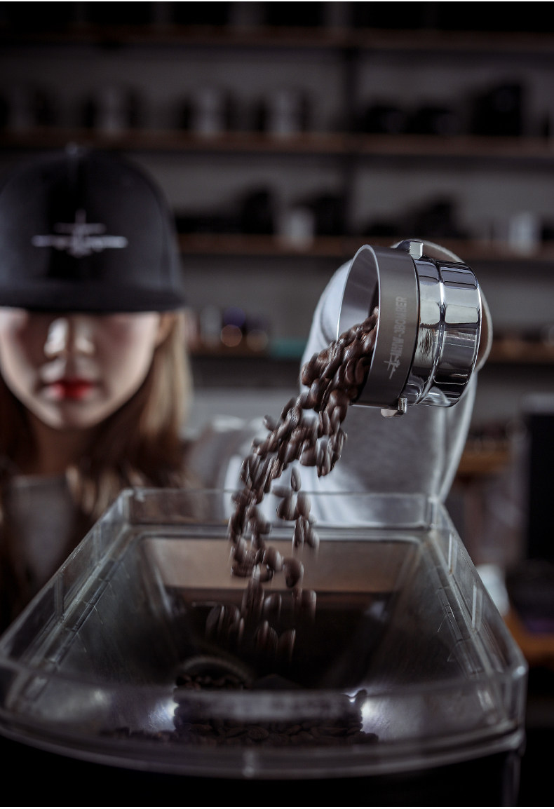 Бомбардировщик 58 -мм кофемашина вручную стаканчика с магнитным всасывающим порошком, порошковые кольца измельчающие бобовые машины против