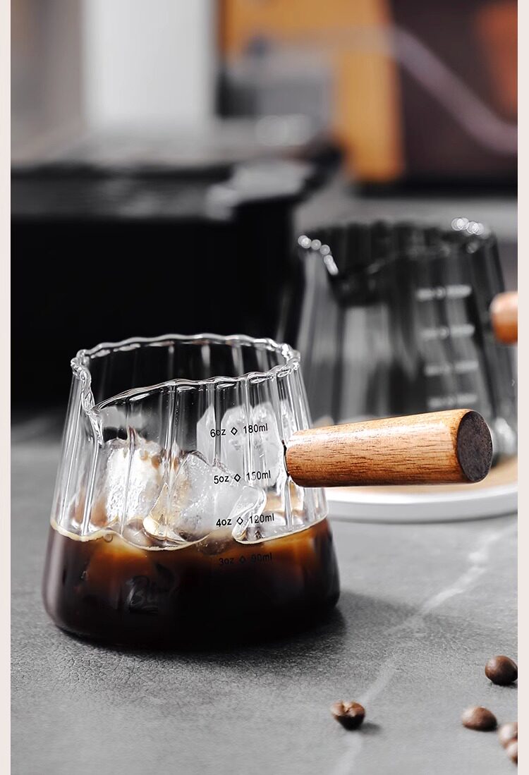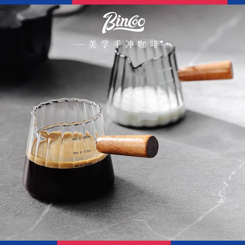 Bincoo Glass Small Milk Cup с масштабной чашкой идентификацией кофейная чашка деревянная ручка маленькое молоко может извлечь чашку ода