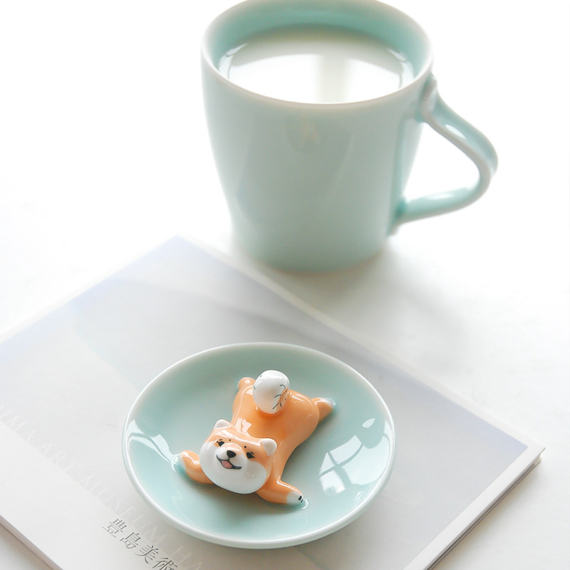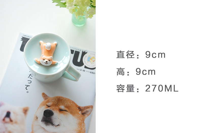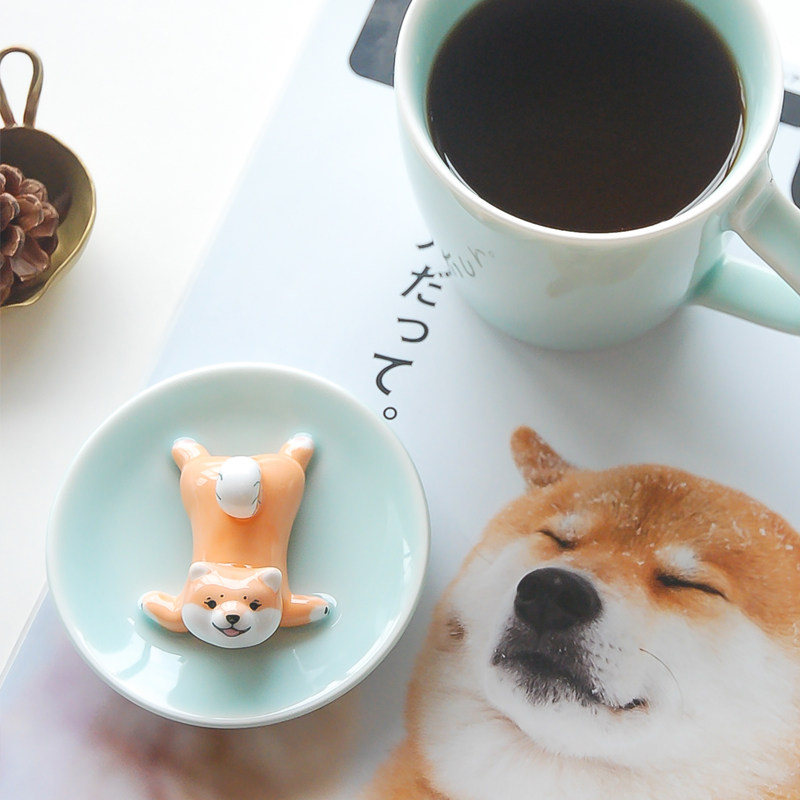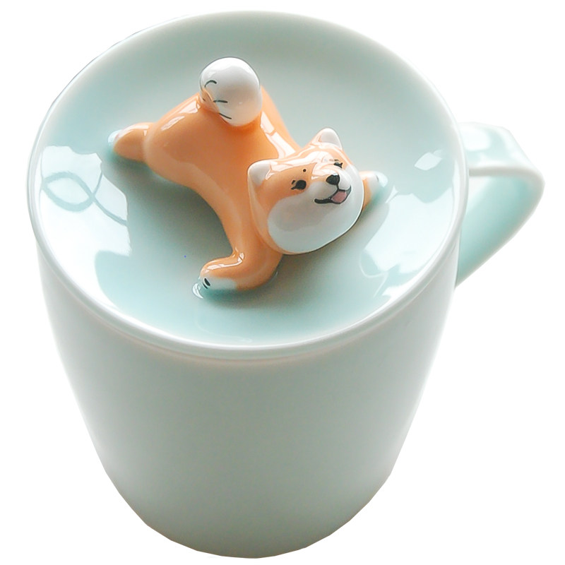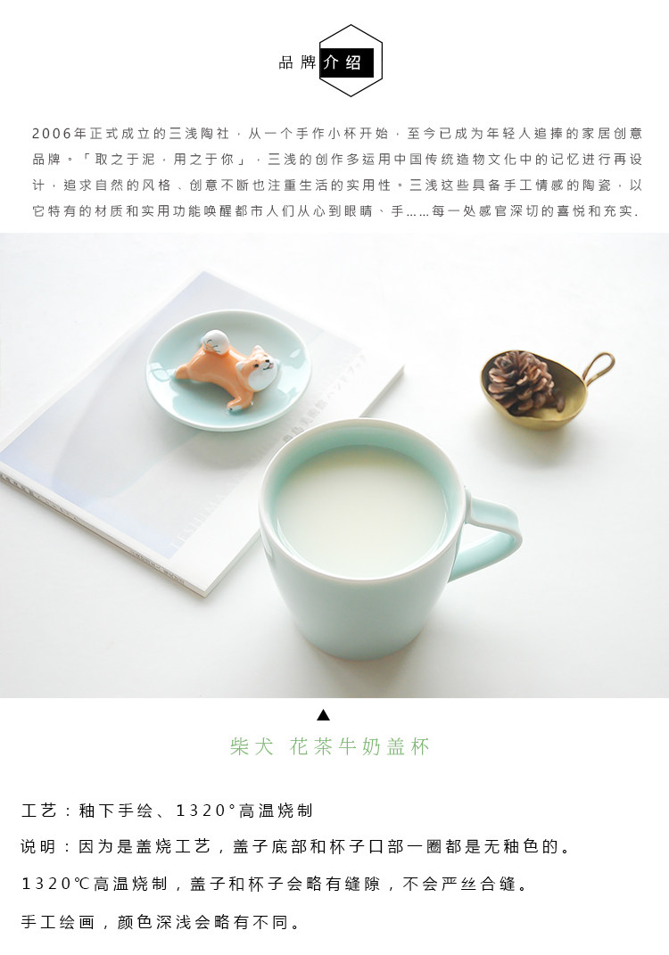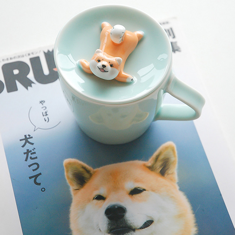 三浅陶社 Дизайнерская милая керамическая чашка Шиба-ину, устойчивая к высоким температурам, с крышкой, кружка, кофейная чашка, подарок