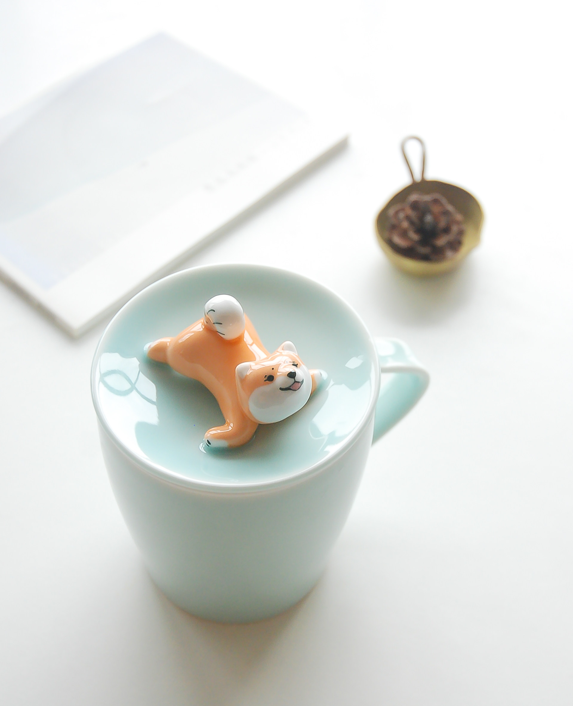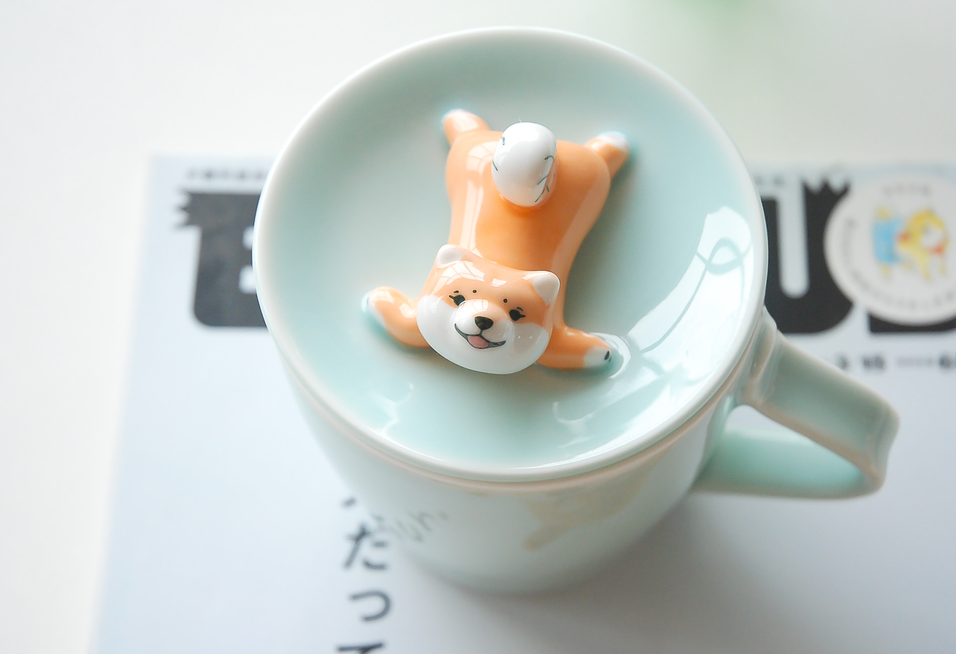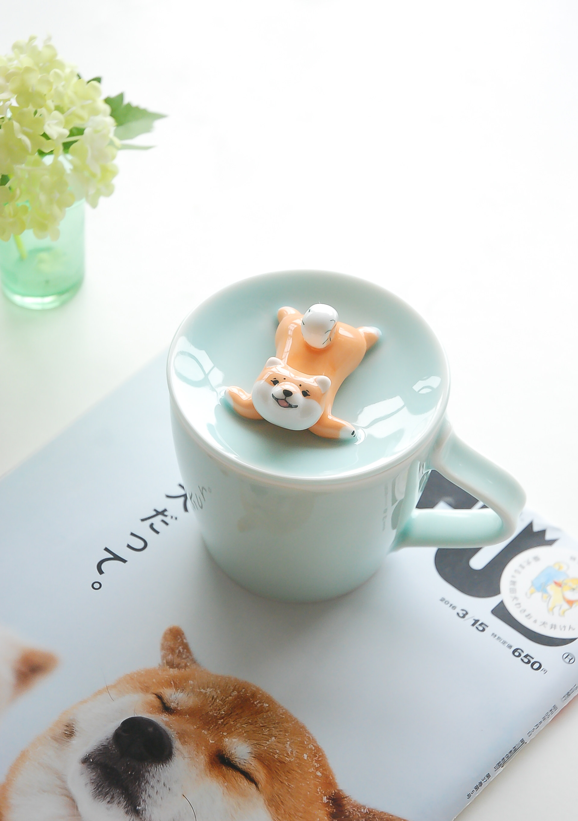 三浅陶社 Дизайнерская милая керамическая чашка Шиба-ину, устойчивая к высоким температурам, с крышкой, кружка, кофейная чашка, подарок