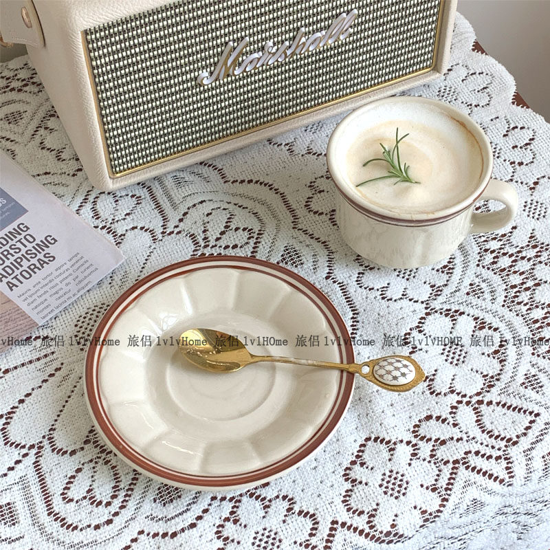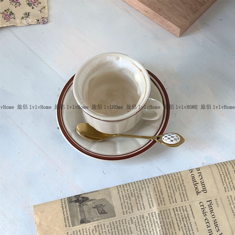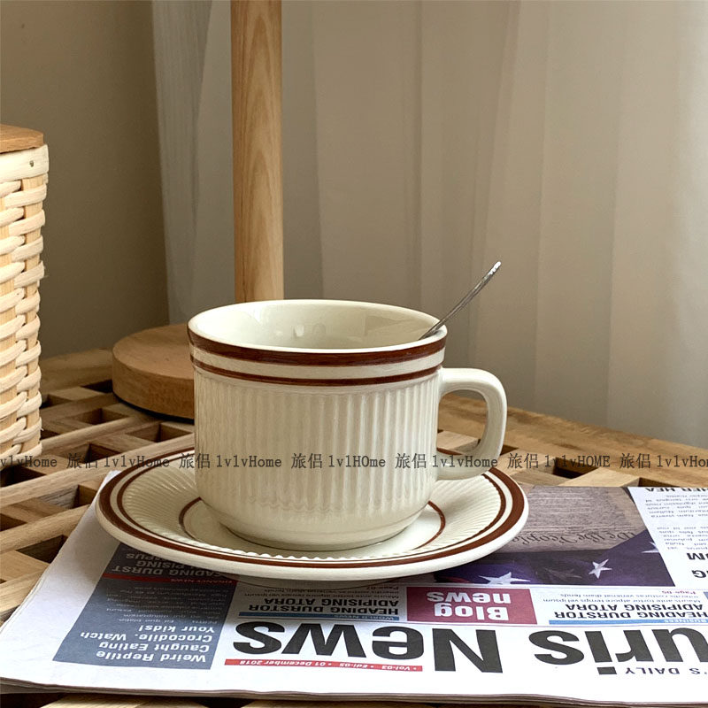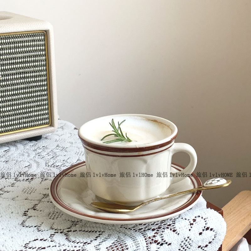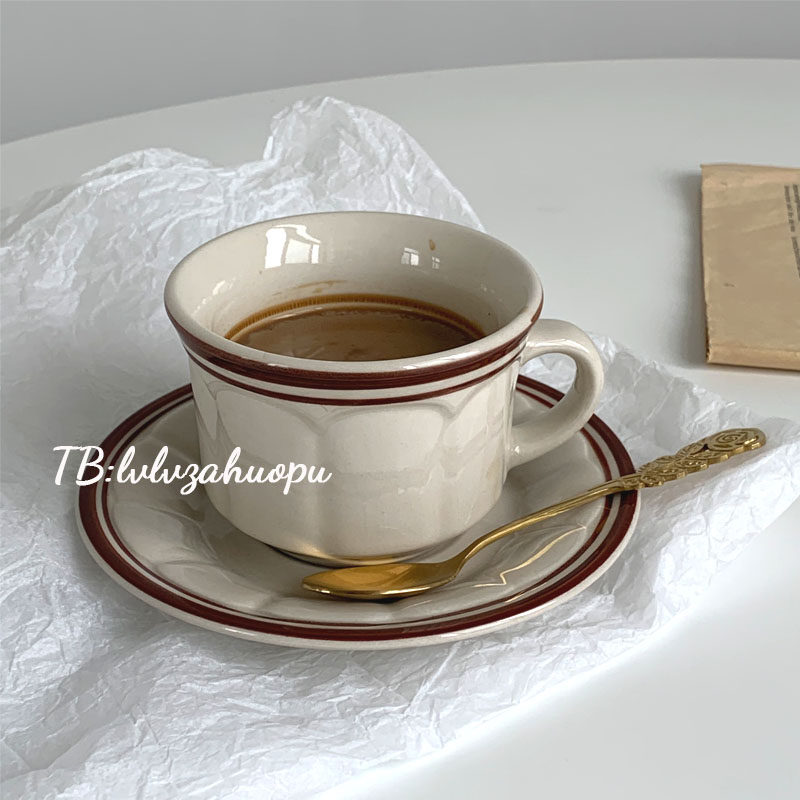 Корейская ретро -ретро -ретробление вино красная линия керамическая кофейная чашка послеобеденной чай чай чай чай чай чай чашка латте винтаж