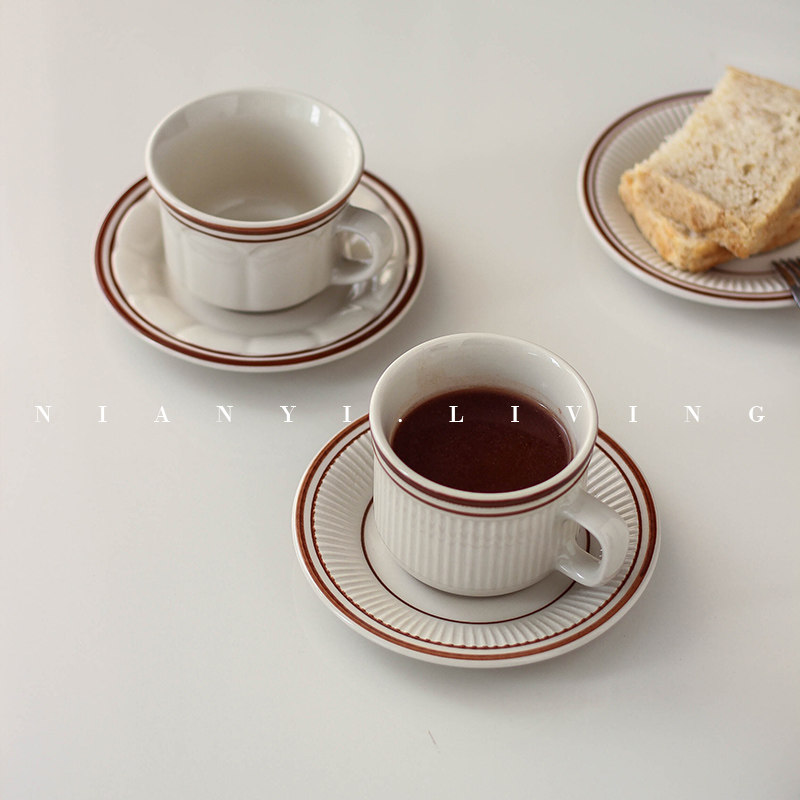 Ретро вертикальная полосатая керамическая латте кофейная чашка диск