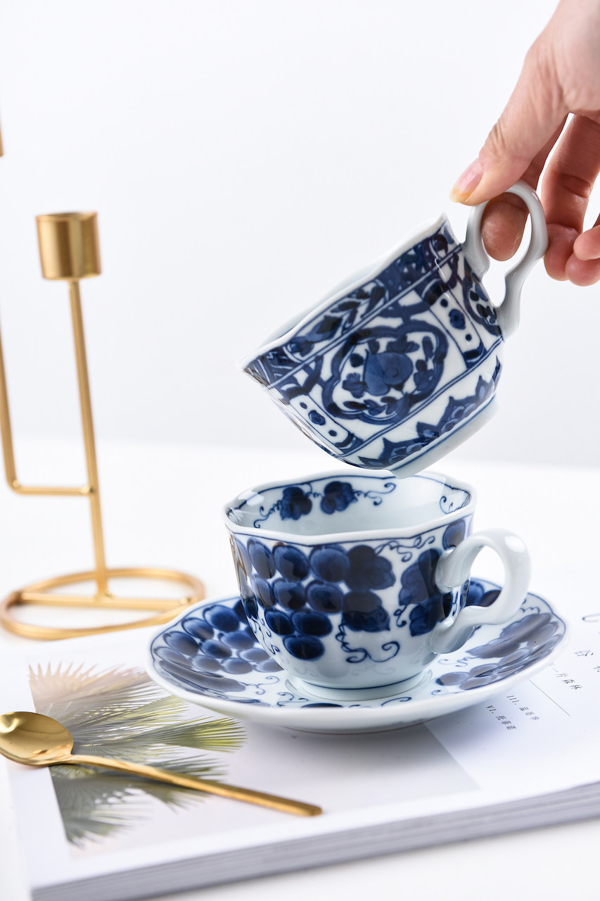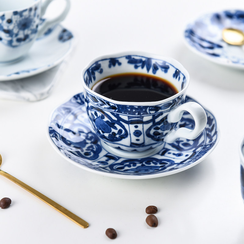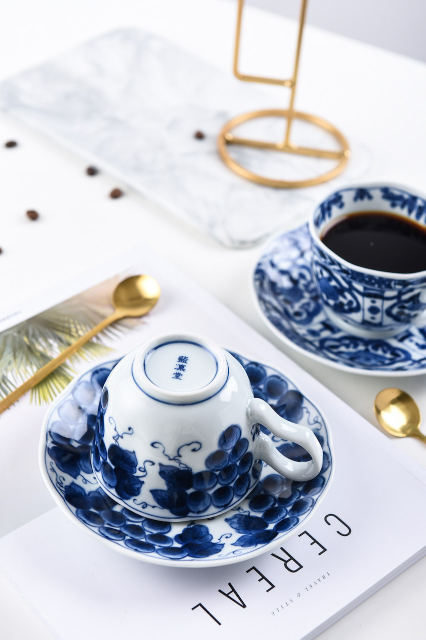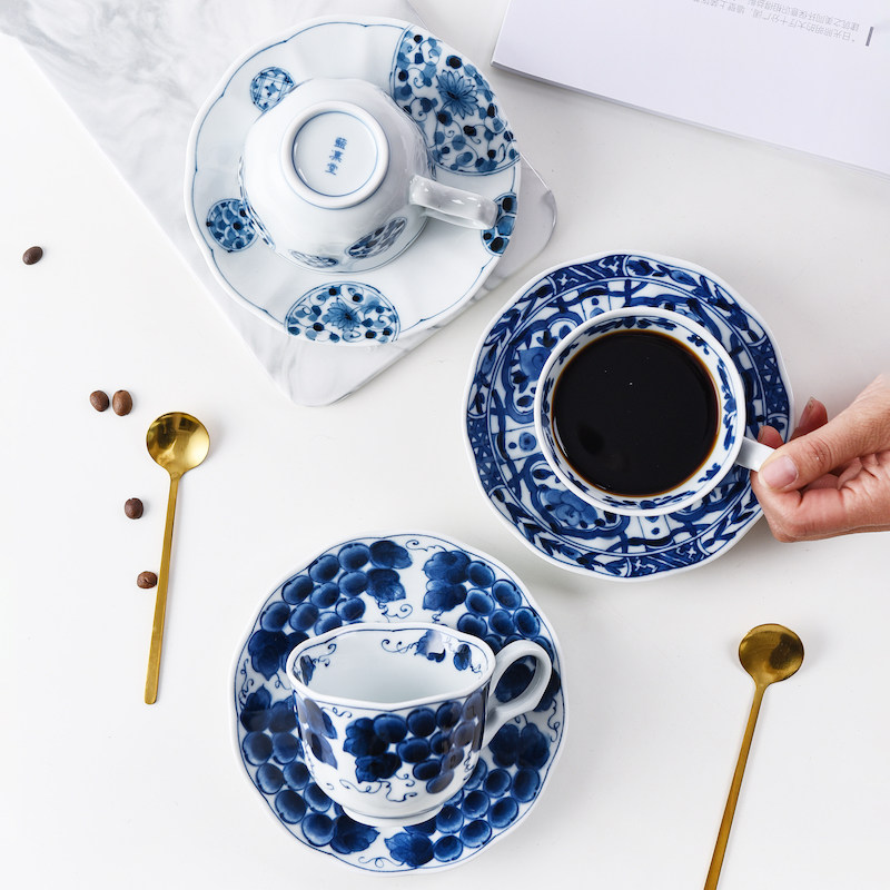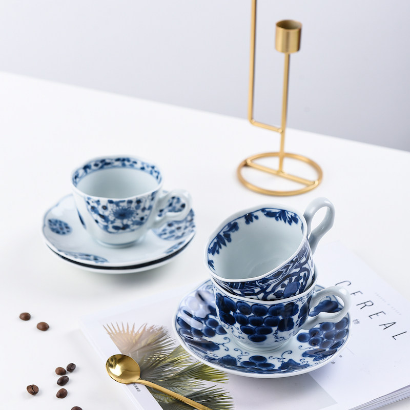 Японский импортный сине-белый кофейный комплект, послеобеденный чай, чайная чашка, красный (черный) чай