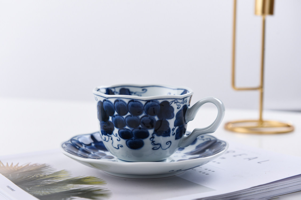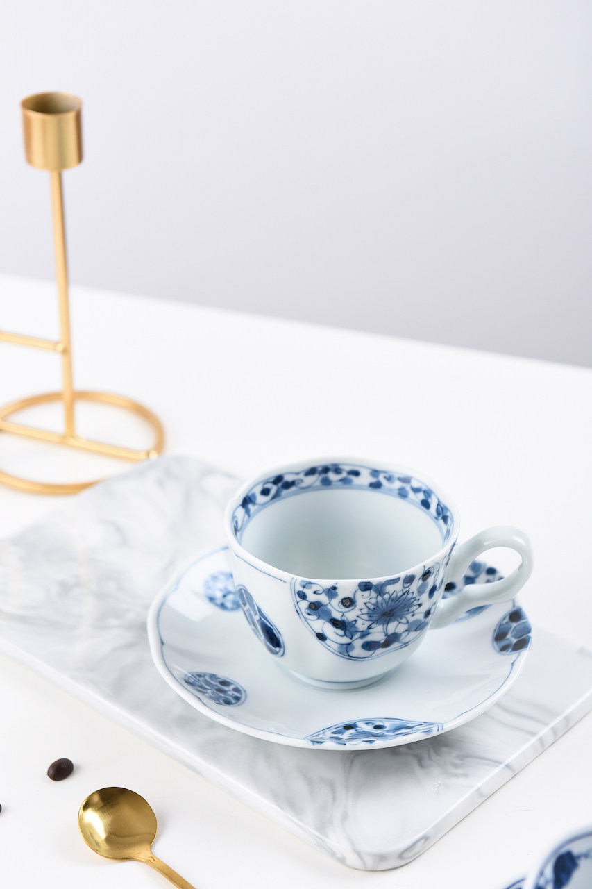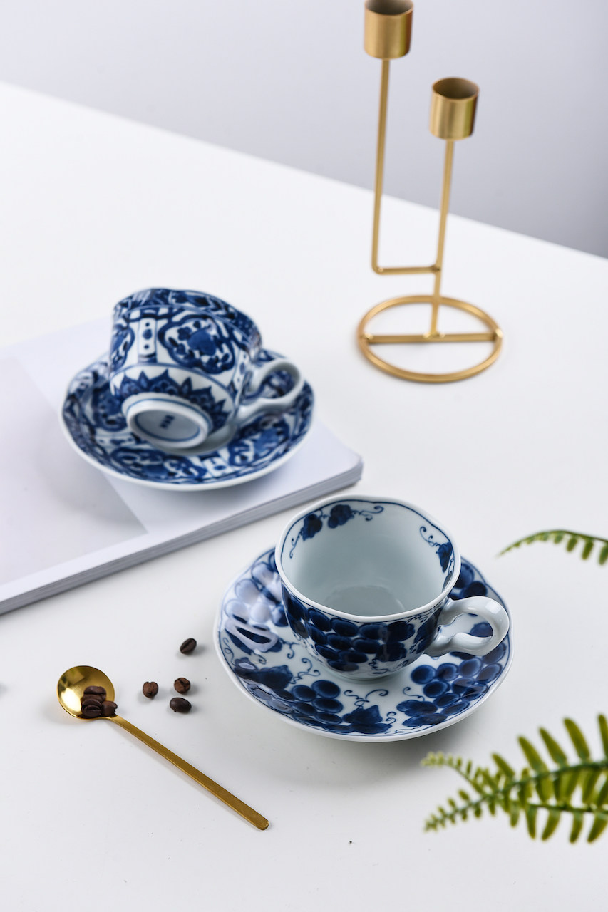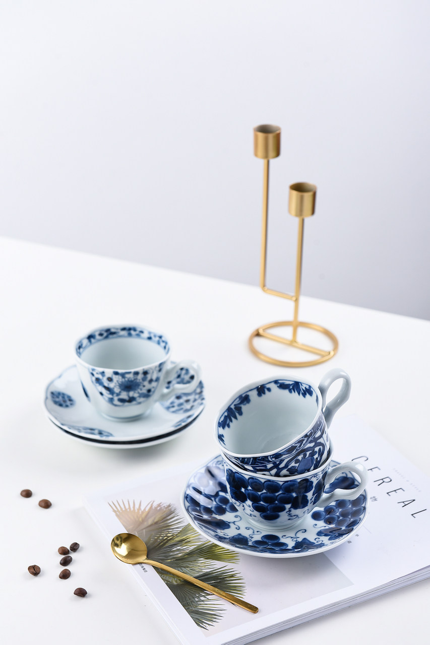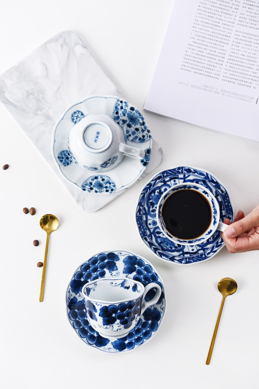 Японский импортный сине-белый кофейный комплект, послеобеденный чай, чайная чашка, красный (черный) чай