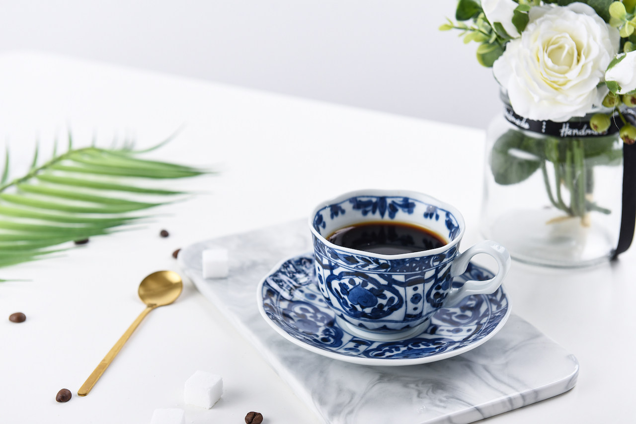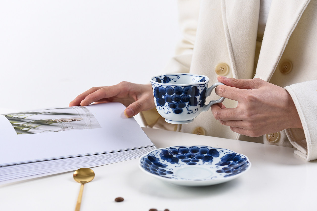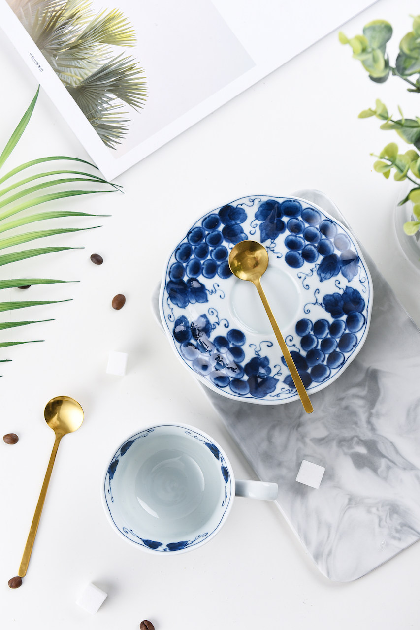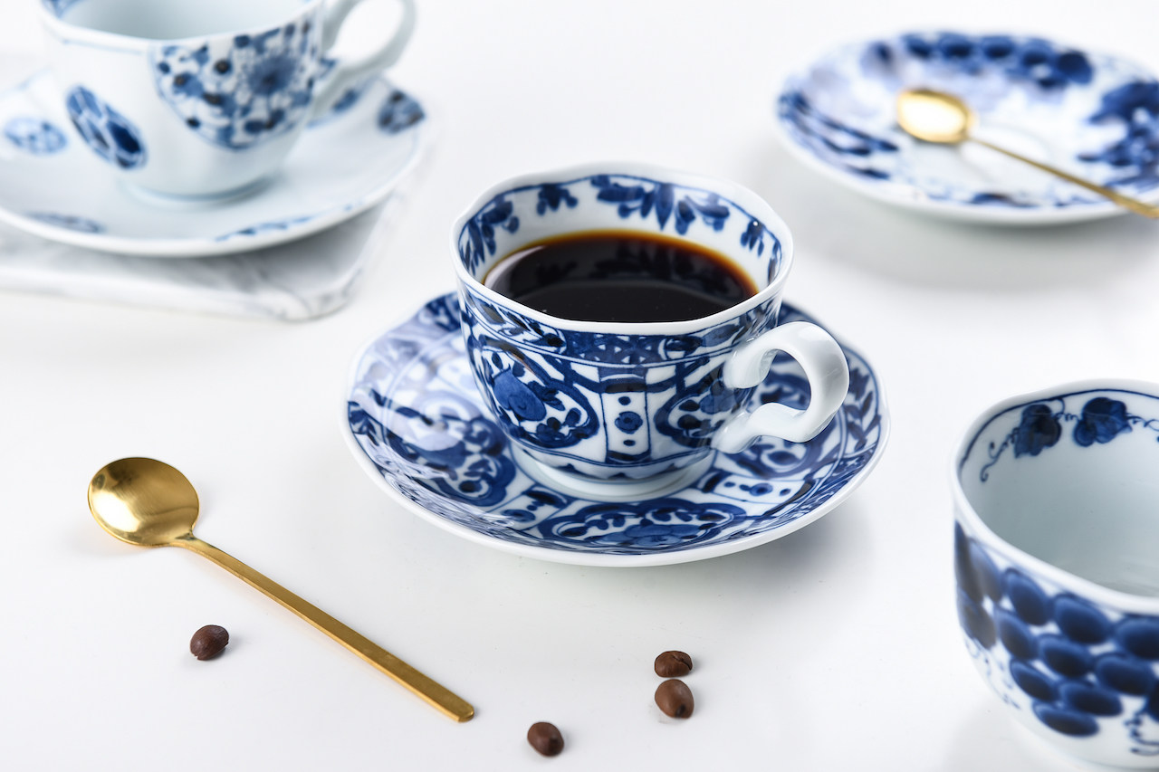Японский импортный сине-белый кофейный комплект, послеобеденный чай, чайная чашка, красный (черный) чай