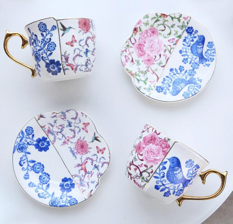 Сине-белый послеобеденный чай, кофейная керамическая чайная чашка