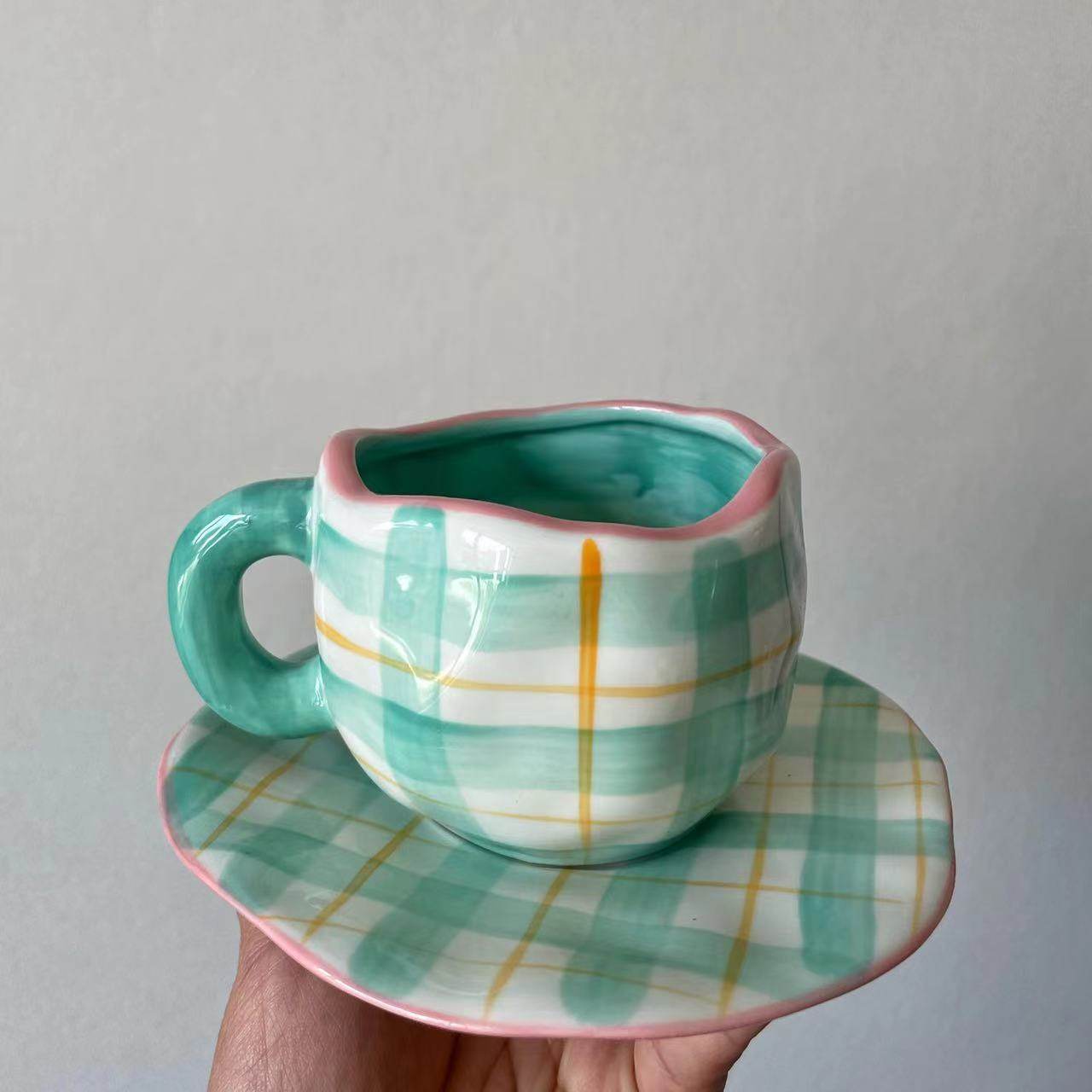 ZjHomeins в стиле ретро -ретро -девочка сердце ниша кофейная чашка набор керамическая чашка кружка молока чашка завтрака