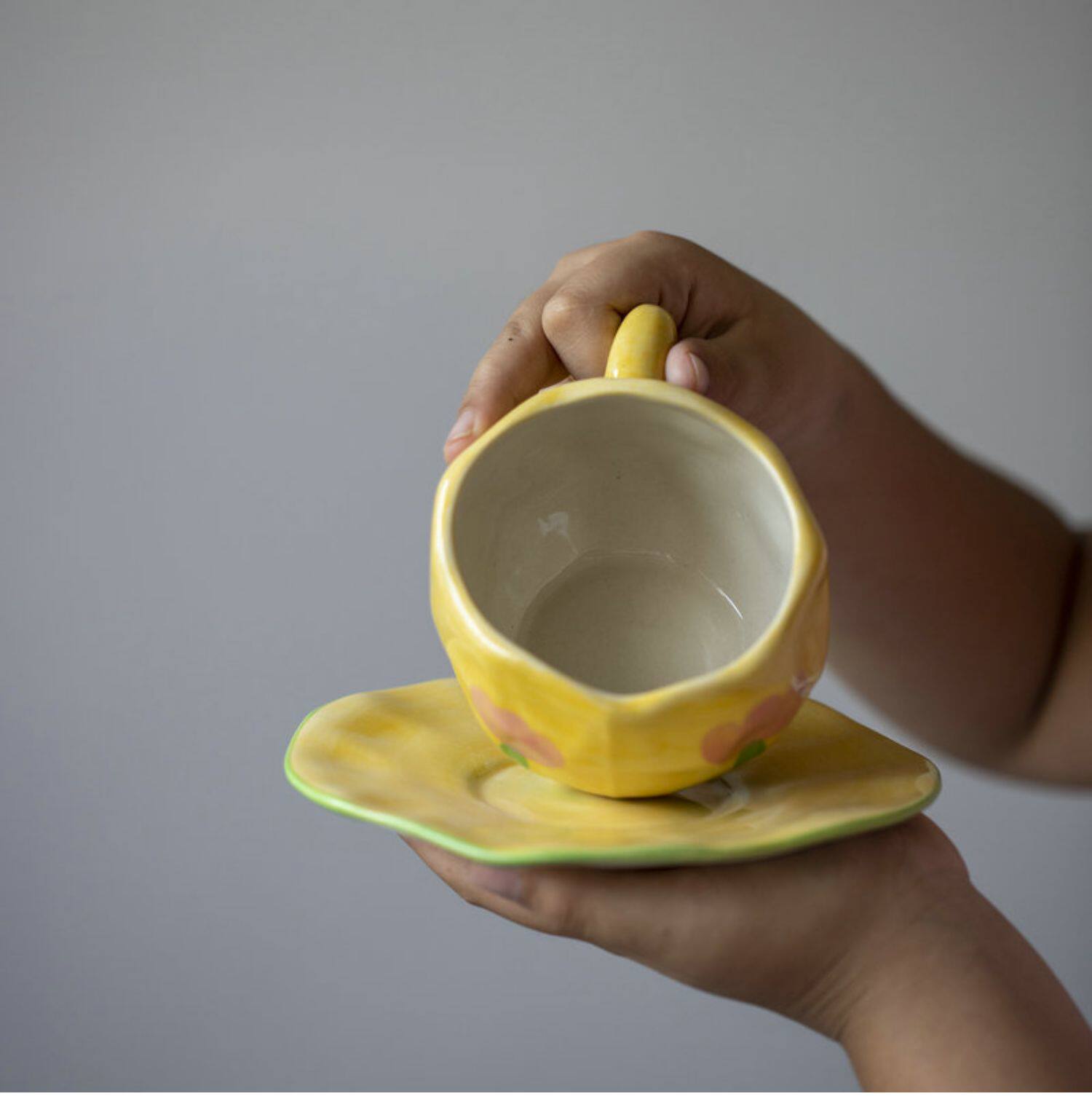 - Желтый цветок тюльпана 【Одна чашка и одна тарелка】