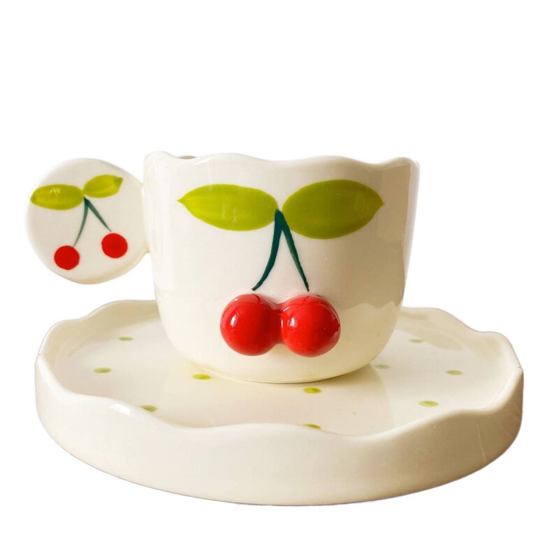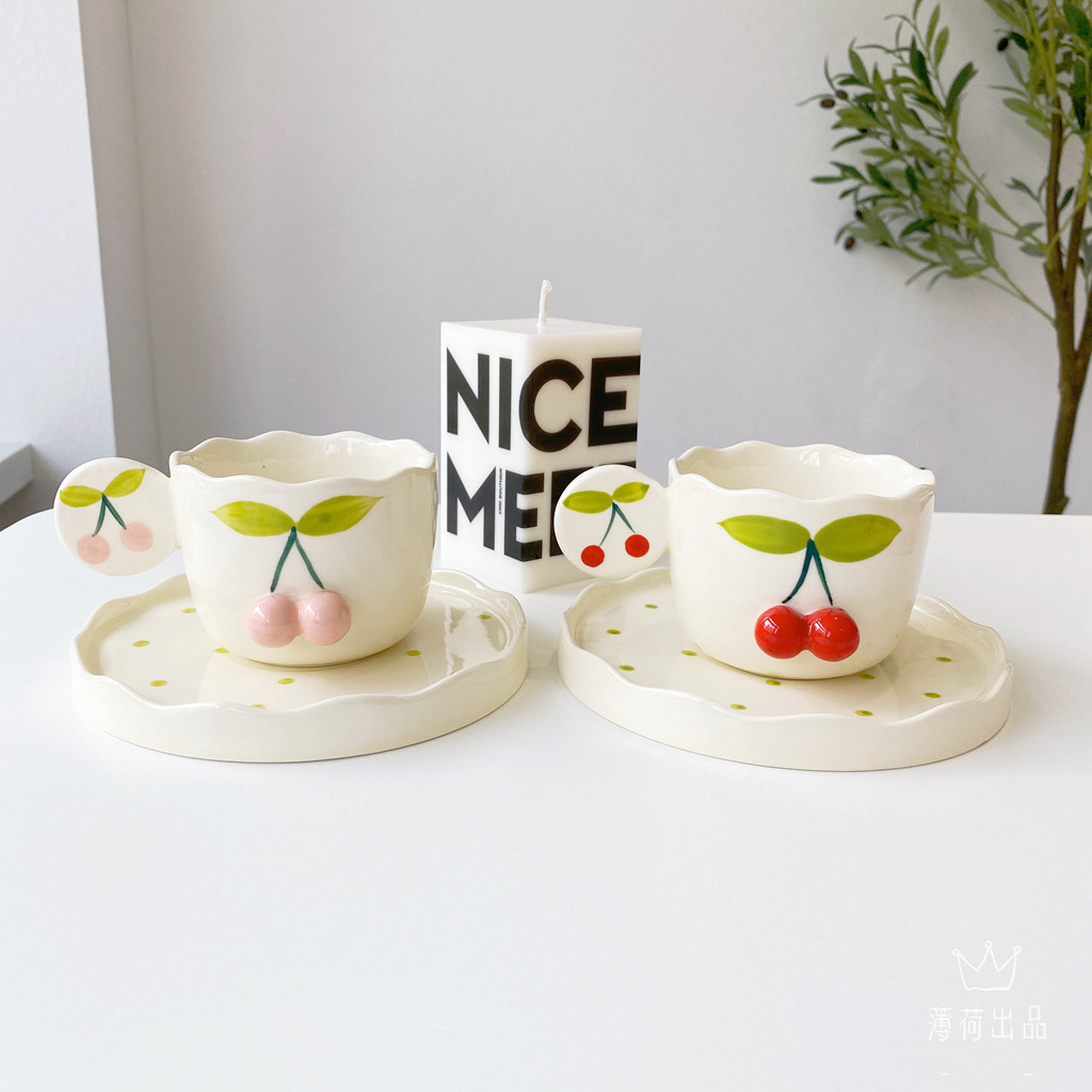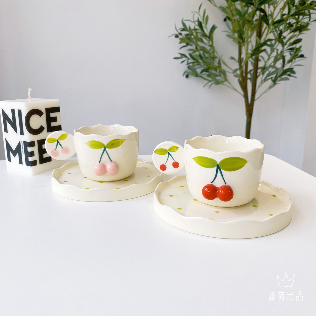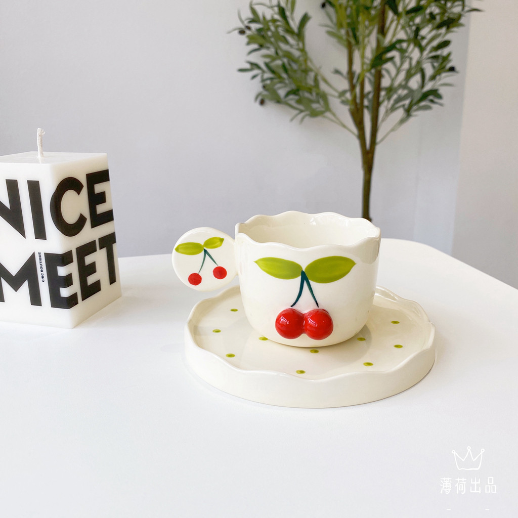 INS Girl Mite Hand -Painted Cherry Coffee Cufe Cufe Comeming Nice Nishe послеобеденный чайный десерт кофейня B & B