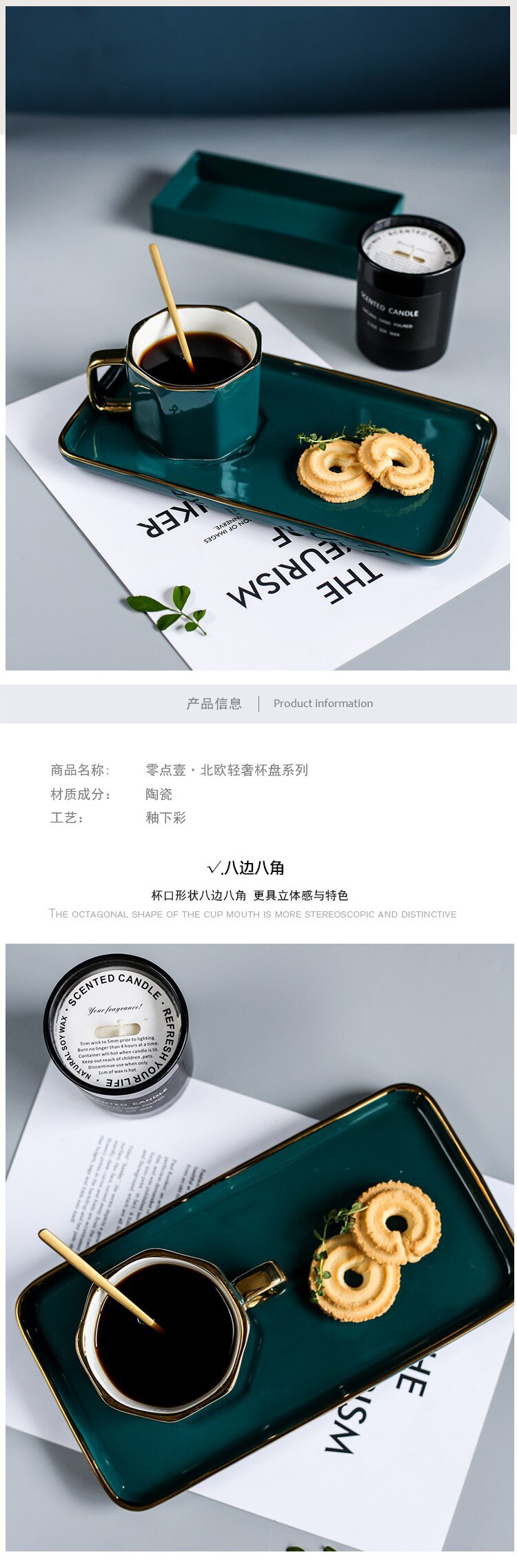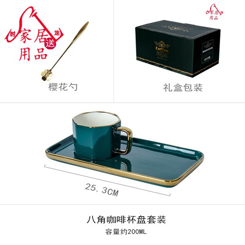 - Набор восьмиугольных подносов для кофейных чашек с ложкой [упаковка в подарочной коробке]