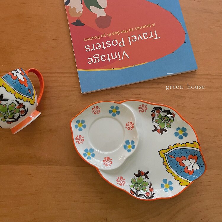 Зеленый дом * Северная нишевая ручка цветов иллюстрация кофейная чашка диск
