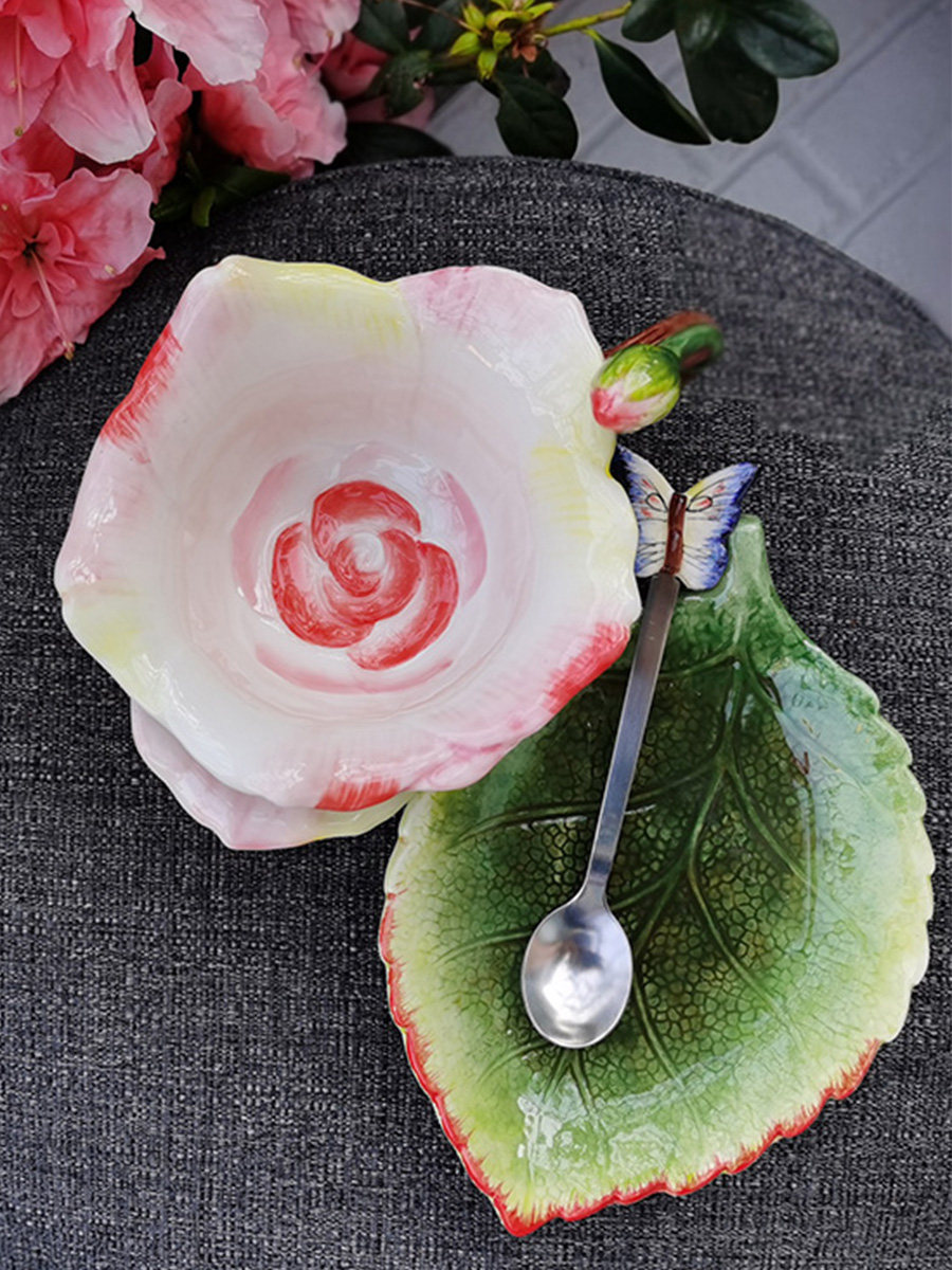 Керамическая креативная чайная чашка с розой в составе, кофейный комплект, травяной чай, чайный сервиз, домашний декор, европейский стиль