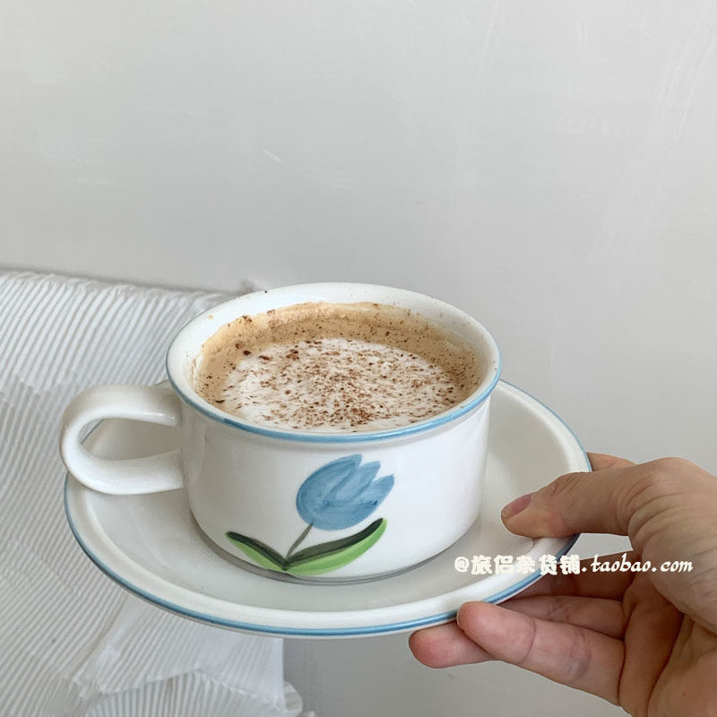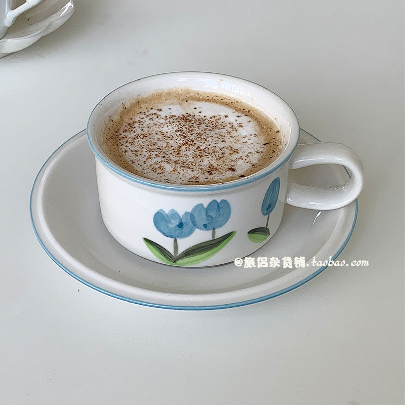 Синий кофейный ретро послеобеденный чай, чайная чашка, ручная роспись, скандинавский стиль