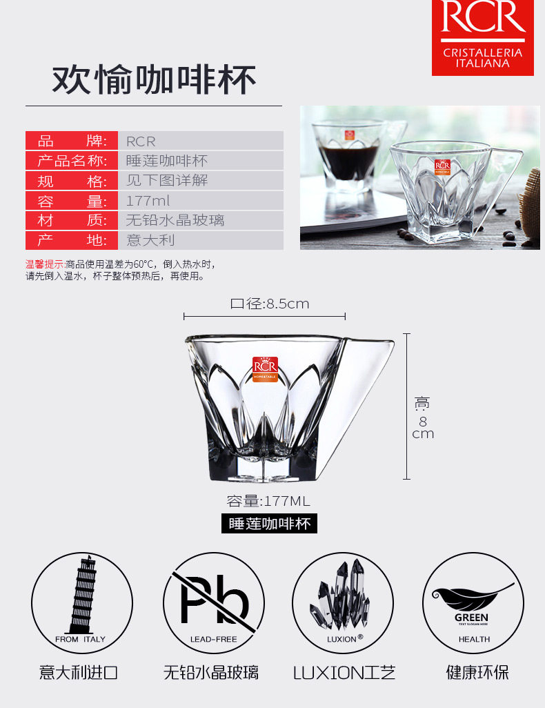 Импортная бессвинцовая хрустальная кофейная чайная чашка, стакан, Италия, 177 мл