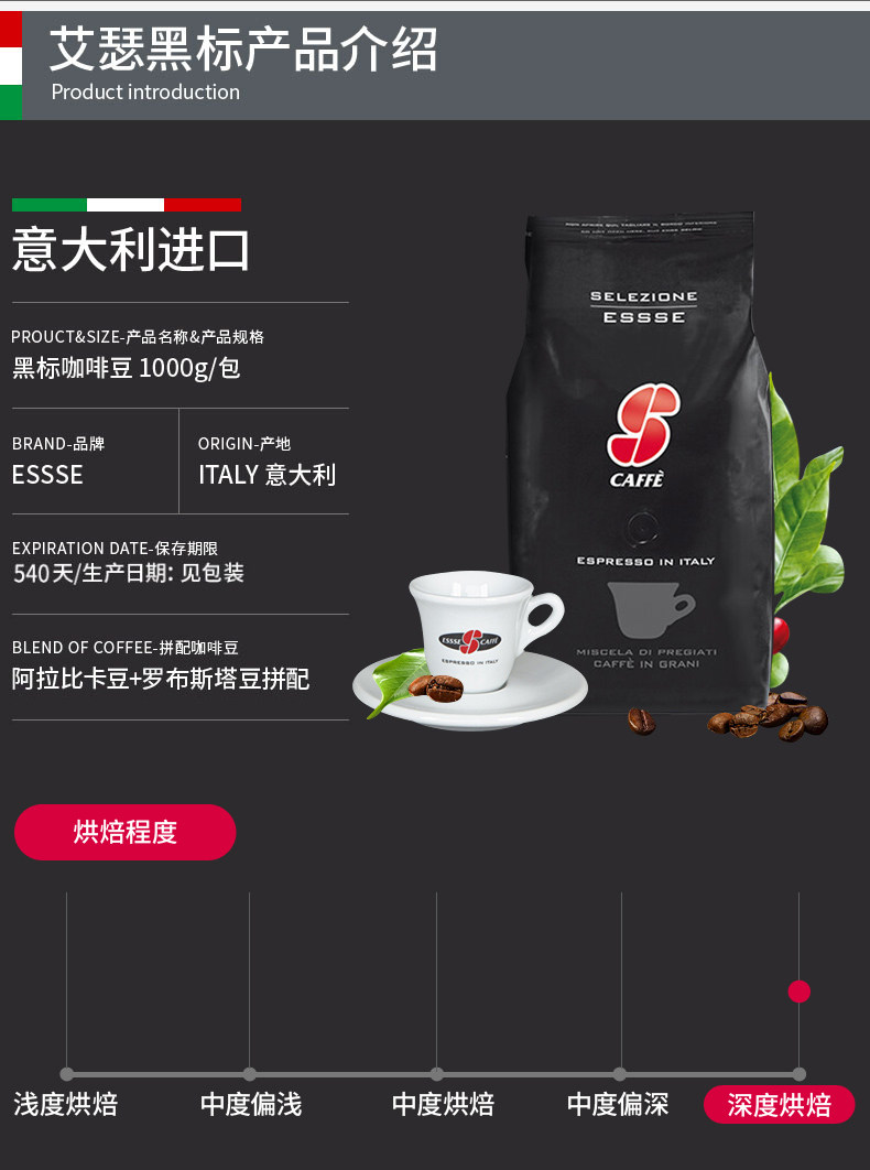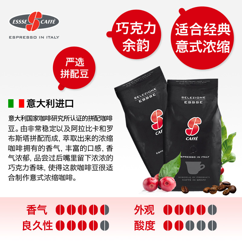 Essse Esse Итальянский патч кофейные зерна импортировал итальянский жареный черный кусок 1 кг.