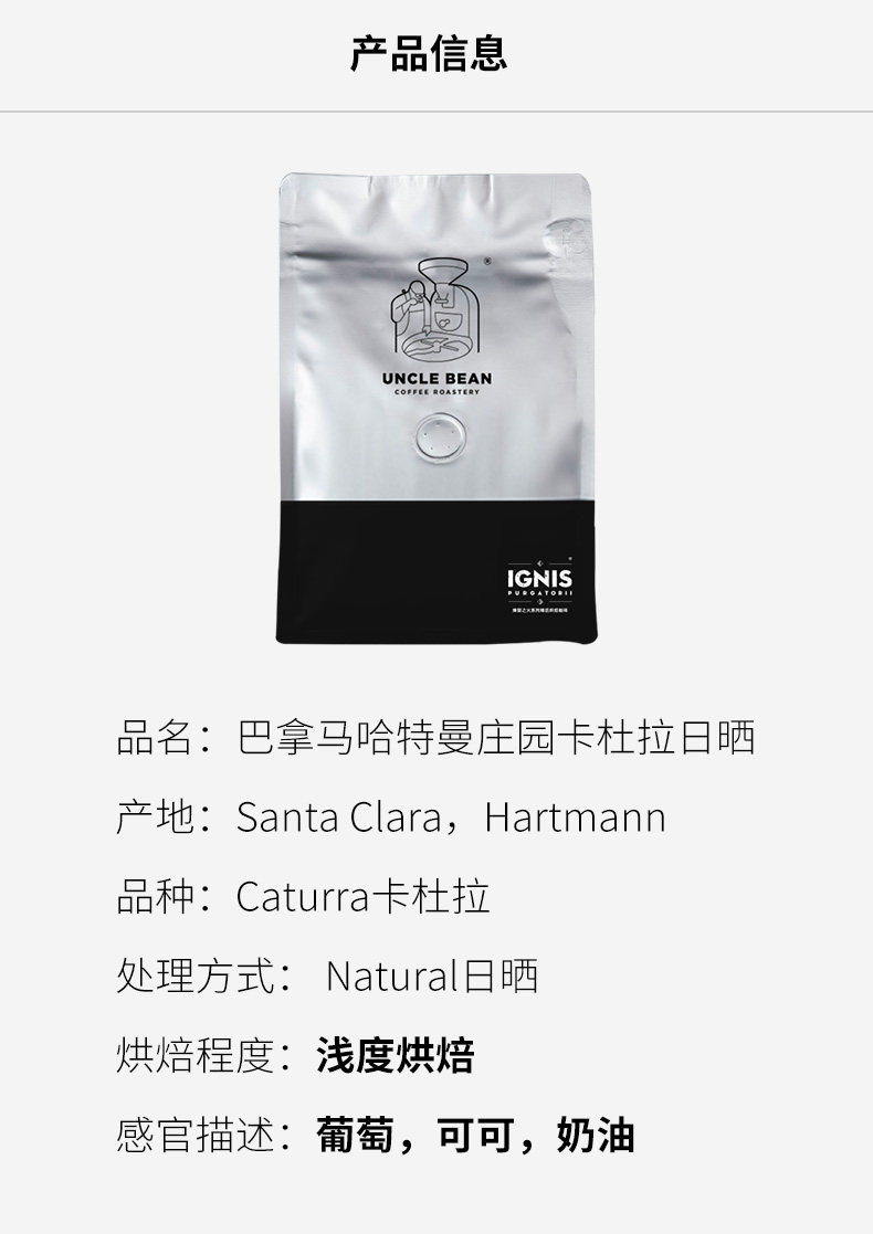 Дядя Дура Панама Хартман усадьба бутик кофе ка -а -дура солнцезащитный свет чистый черный кофе 227 грамм