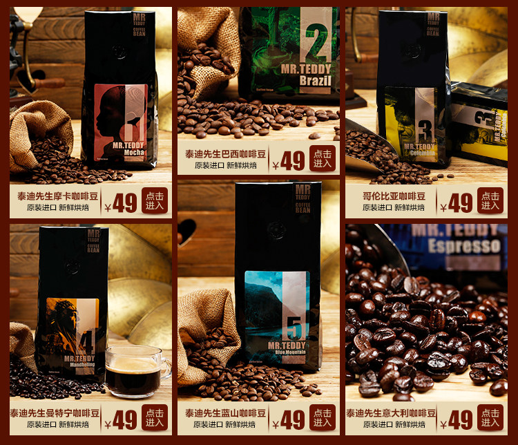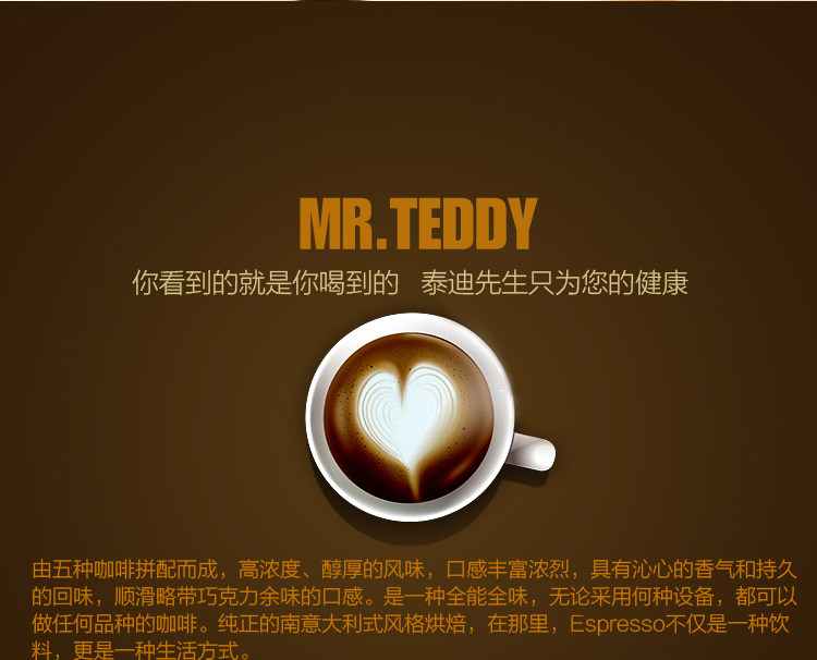 Мистер Тедди, мистер Тед, итальянская кофейная фасоль импортировал свежий жареный свежий жареный кофейный порошок 454G