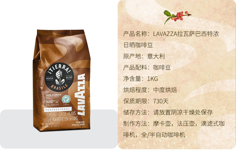 Италия импортировала Lavazza/La Vasha Earth Rain Forest Series Demoning Бразилия Саннонг черная кофейная фасоль 1 кг