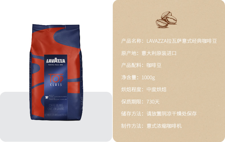 Lavazza La Vasha Итальянский импортный красная карта кофейная фасоль -стиль классический Espressotopclass1kg