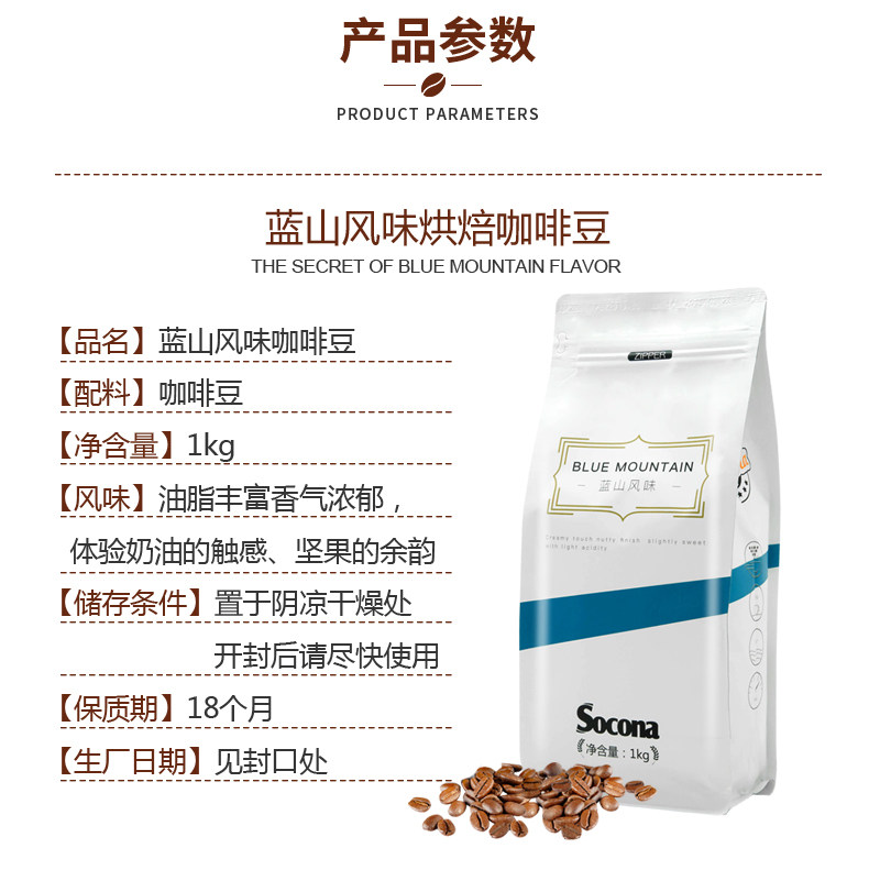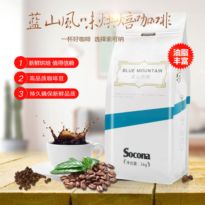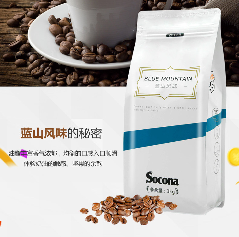 Socona Blue Mountain Coffee Beans 1 кг массаж свежий жареный рекламный ролик с чистым черным кофейным порошком