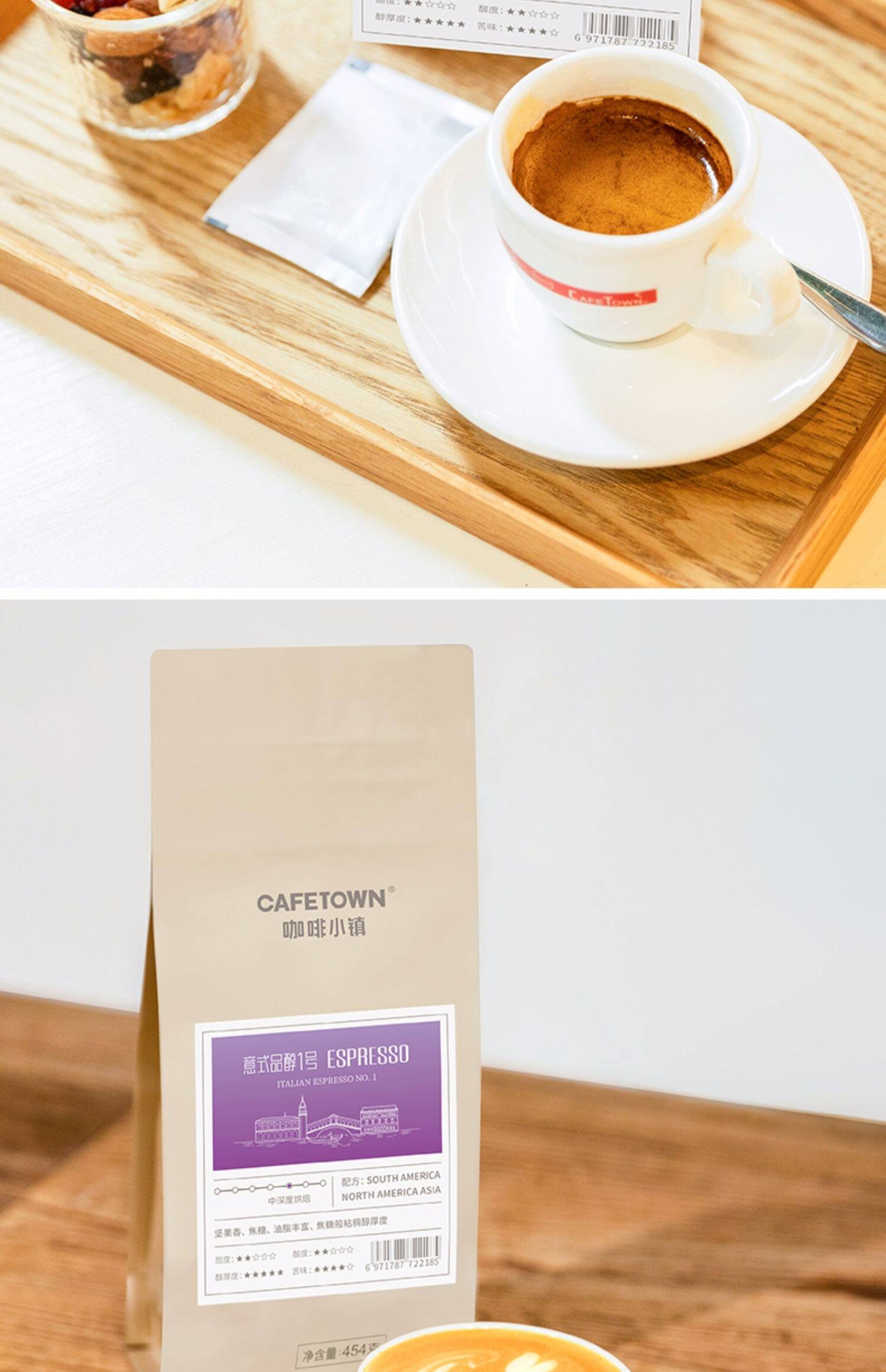 Cafetown Итальянский кофе в зернах, смесь эспрессо № 1, свежемолотый черный кофейный порошок