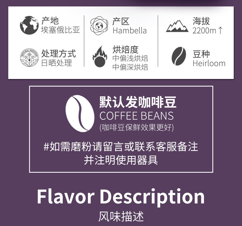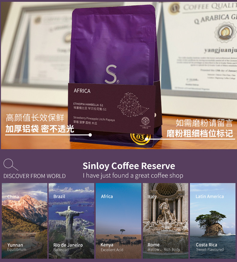 Sinloyreserve Boutique Single Product Coffee Beans Ethiopia hambera Sun Sunscreen 250g