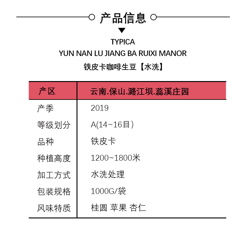 Ruixi выбирает Yunnan Rare Iron Pickup Coffee Coffee Coffee Beans 14-16 сетка может быть выпечена 1000 г