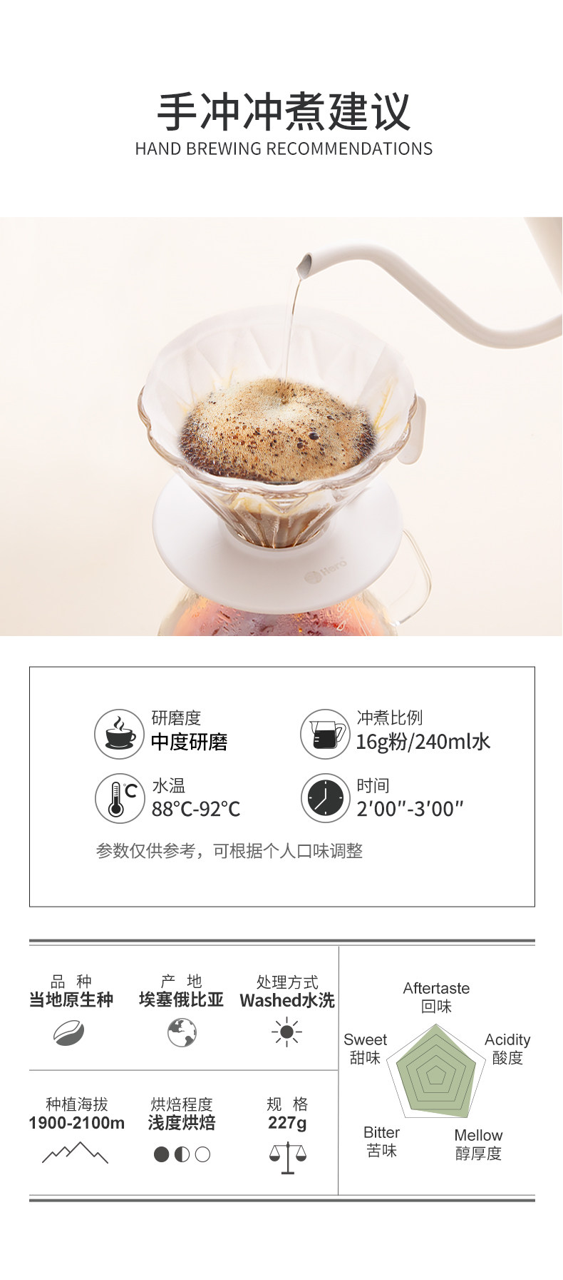 Кофейный город Эфиопия Jegoffei Coffee Bean Wash G1 Fresh Roast Single Product Coffee 227G