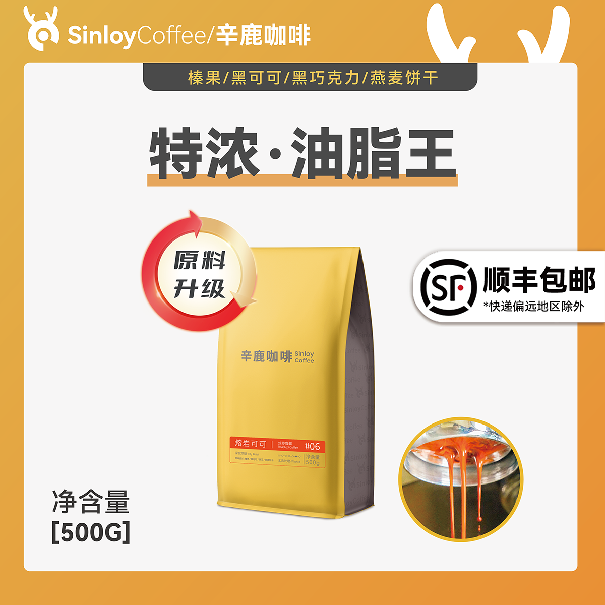 Sinloy Xinlu Итальянский сильные кофейные зерна Юньнань, комбинация с обгорным углем, нефть и жирный король, измельченный порошок 500G