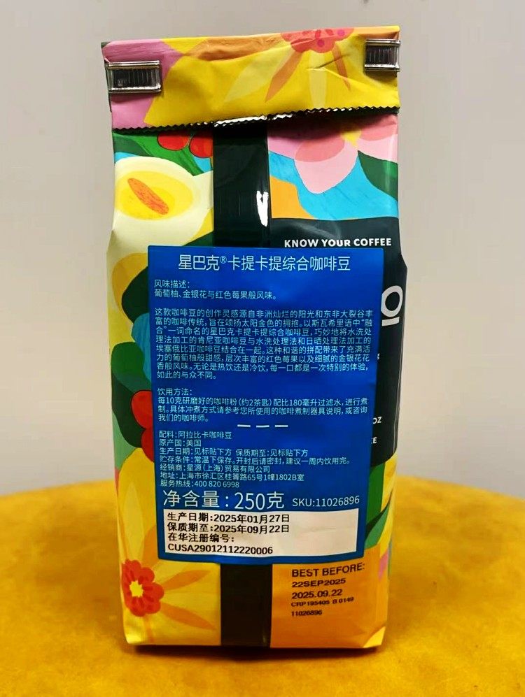 Бесплатная доставка 2025 Starbucks Starbucks Caticati Комплексные кофейные зерна Грейпфрут ягоды аромат 250 г