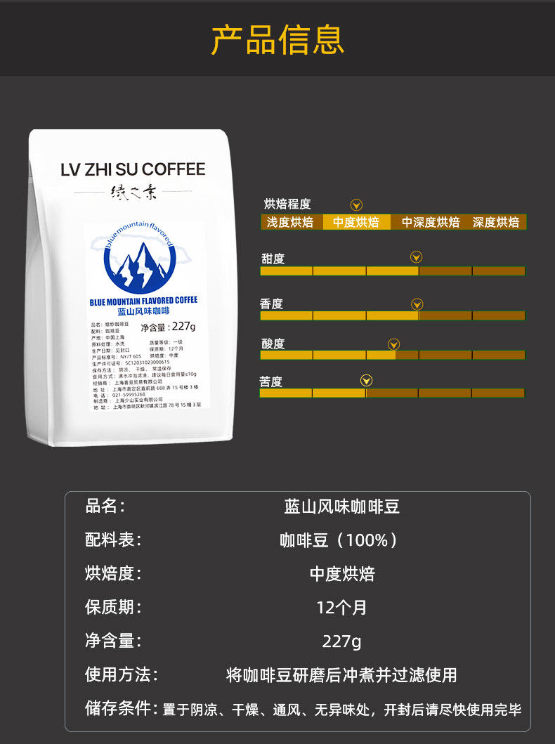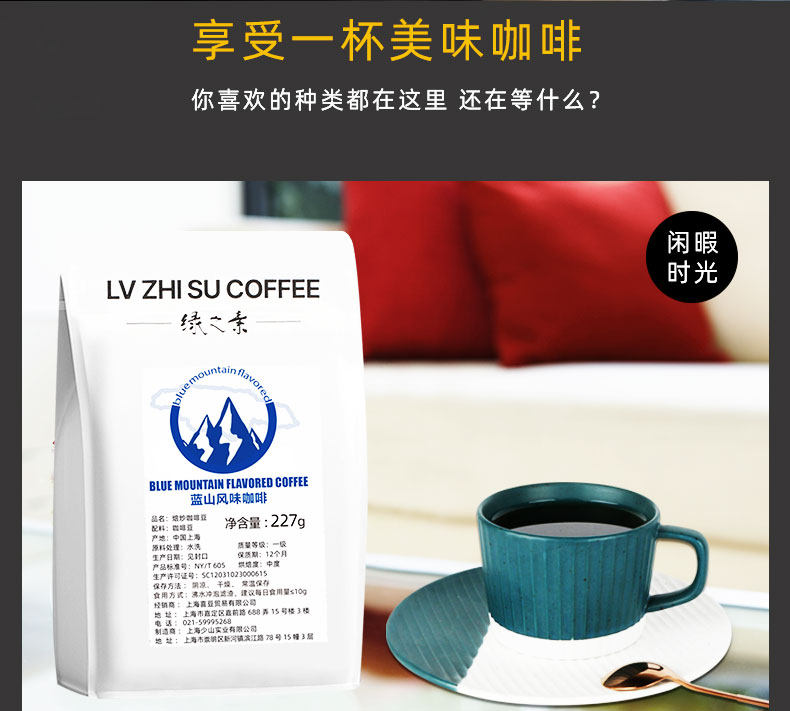 绿之素 Голубая горная аромат кофейная фасоль свежая американская кофемашина освежает