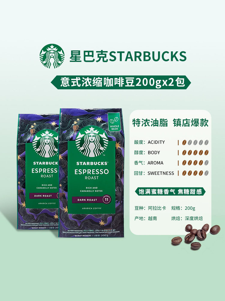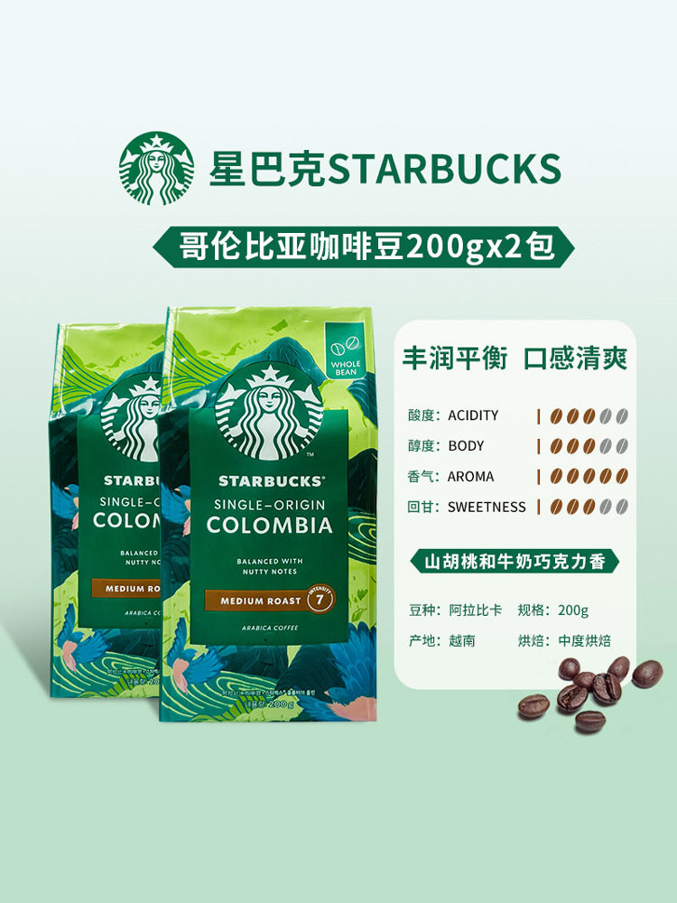 Starbucks Starbucks Coffee Beans 200g Итальянский концентрированные глубокие жареные бобы Parker Colombia Импортирована