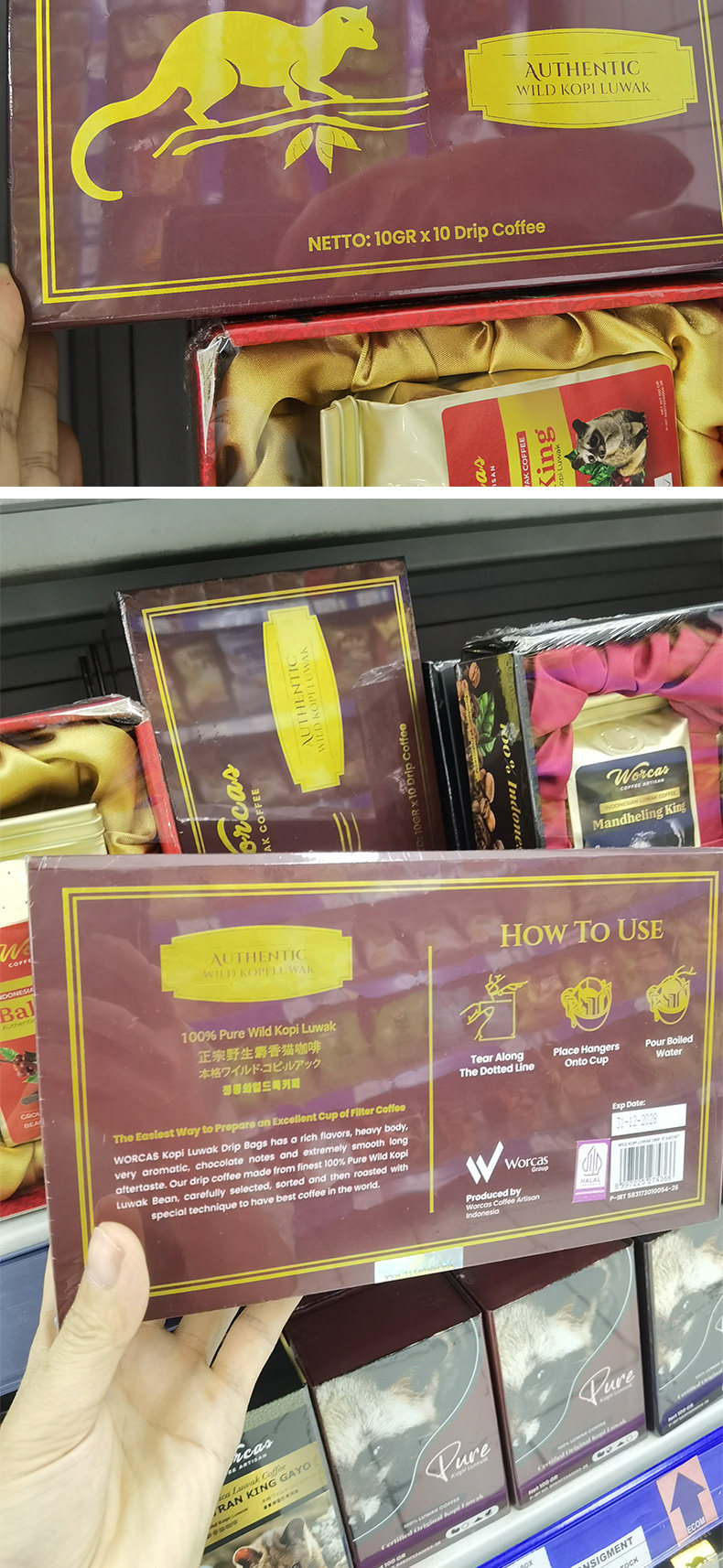 Агент по закупкам в Индонезии кошачьих какашек WORCAS, кофейных висячих ушей, оригинальный вкус WILD (коробка из 10 висячих ушей, Джакарта)