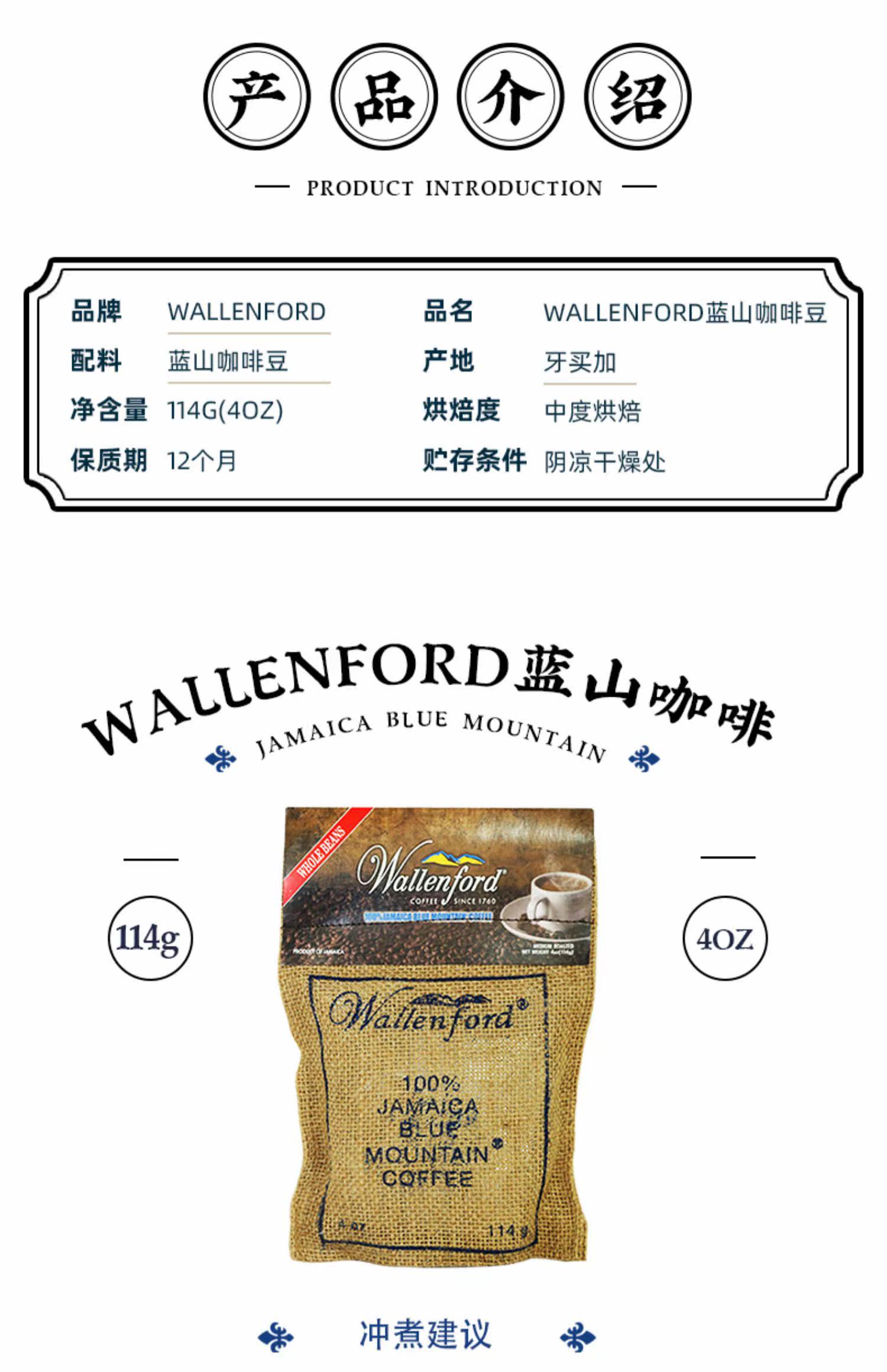 Wallenford Оригинальная импортная покупка зубов плюс кофейные зерна Blue Mountain 114G 4 унции Новая дата прибытие