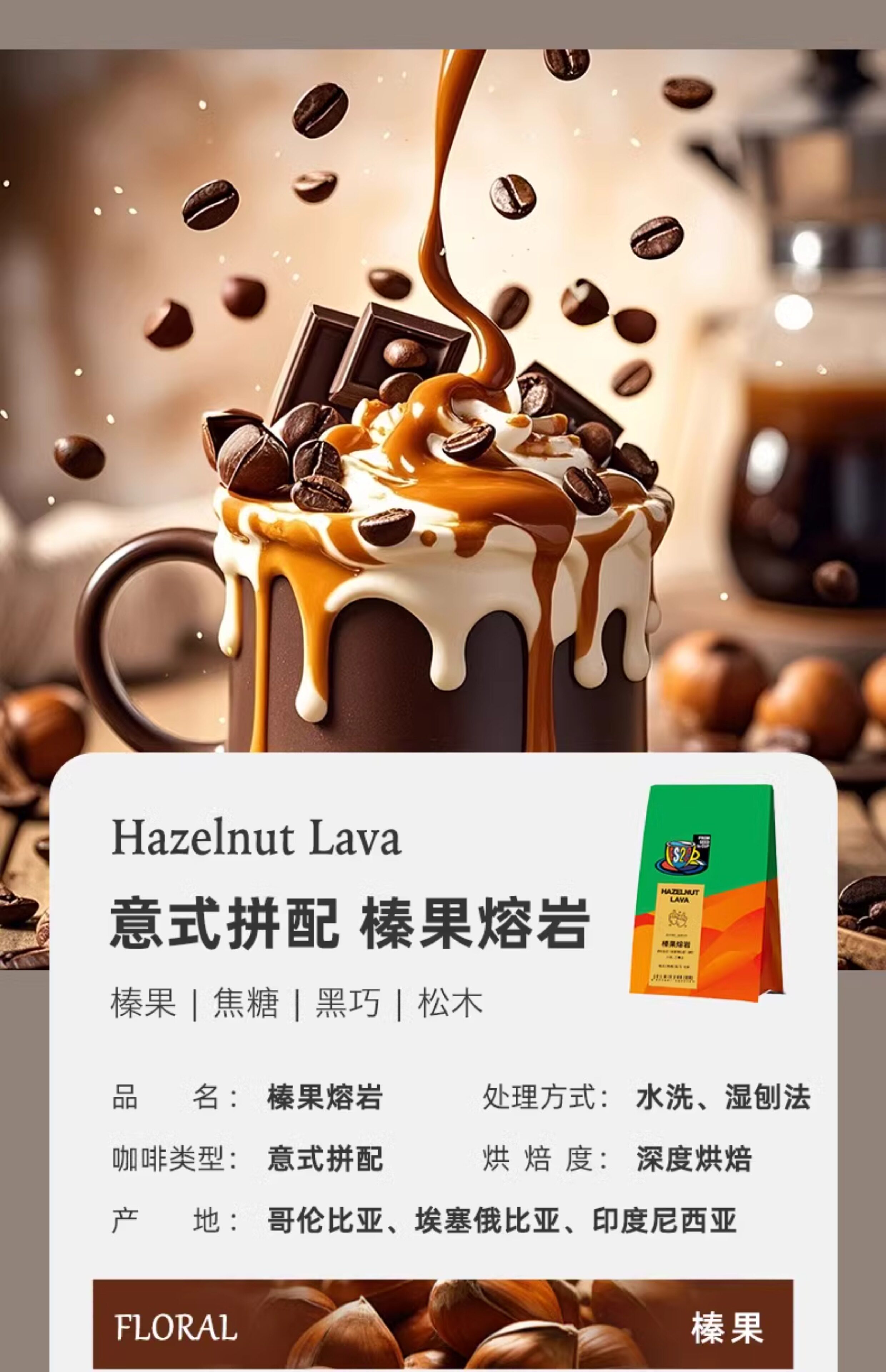 FS2C Премиум итальянский стиль, смешанный со свежими темными жареными кофейными зернами Американский холодный варево черный кофе латте темный фундук с лесным орехом
