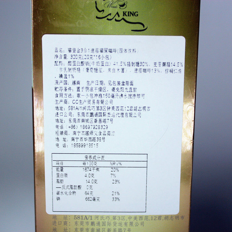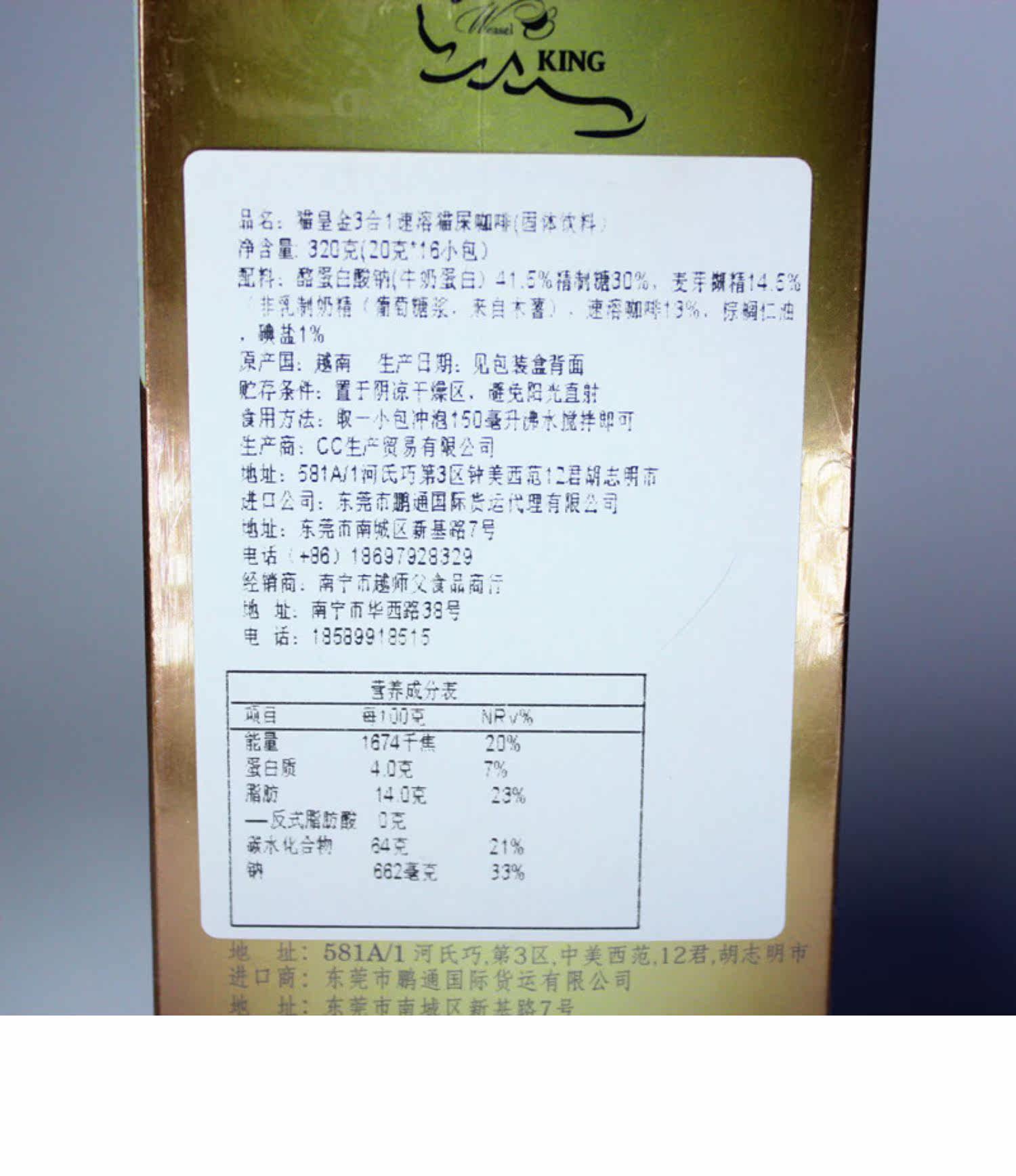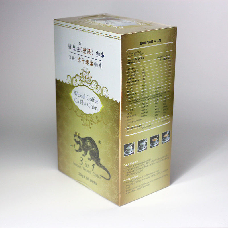 Бесплатная доставка Вьетнамская кошка Император Золотой кот Дерьмо кофе Три -в одно скоростное кофе прямо варить офисные напитки
