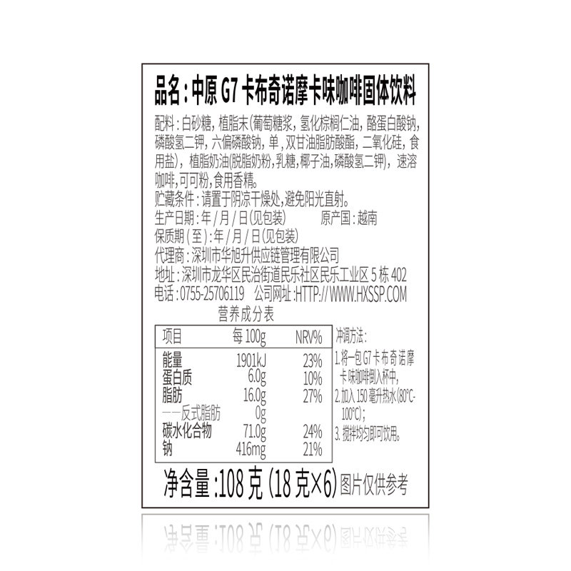[Импорт] Вьетнам Центральные равнины G7 Coffe Cabcino Speed Coffee Mocha -со вкусом 108G6 Cup Learning Обучение освежает