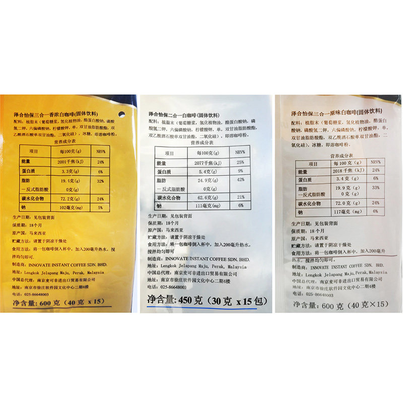 Малайзия импортировала первоначальные два -ароматные, ароматные, густой быстрорастворимый три -в одном белом кофе Три сумки из трех мешков